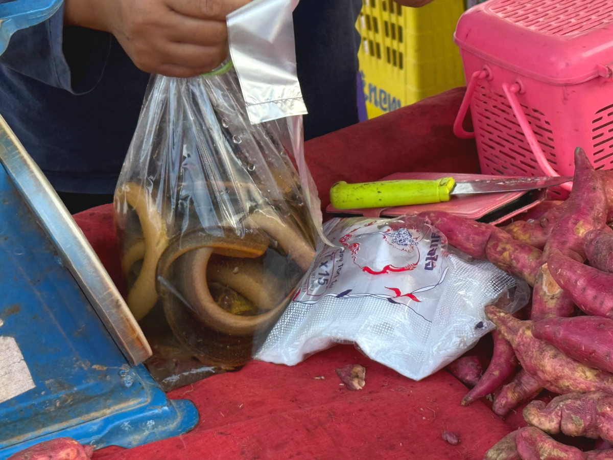 天然ウナギがビニール袋で売られています