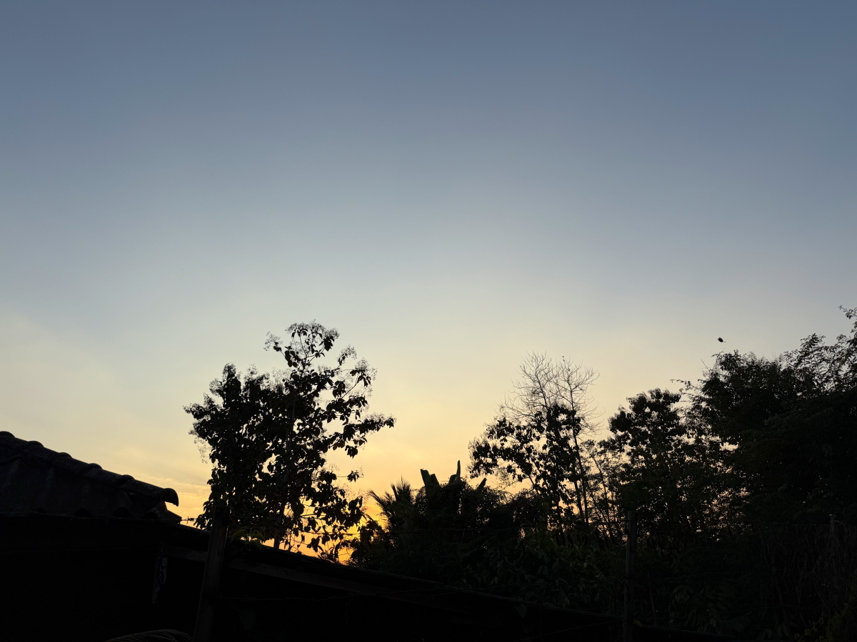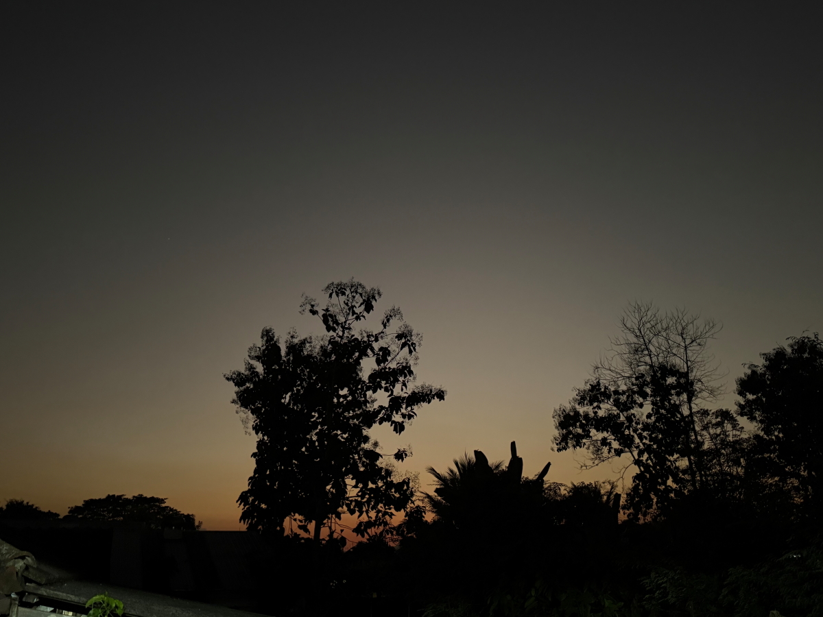 おそらくこの視界の中に、細い月が浮かんでいると思われます