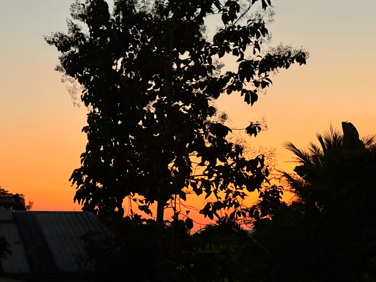 日の出の空から庭のお花、植木屋さんと木曜開催の市場、夕暮れ定点観測まででした
