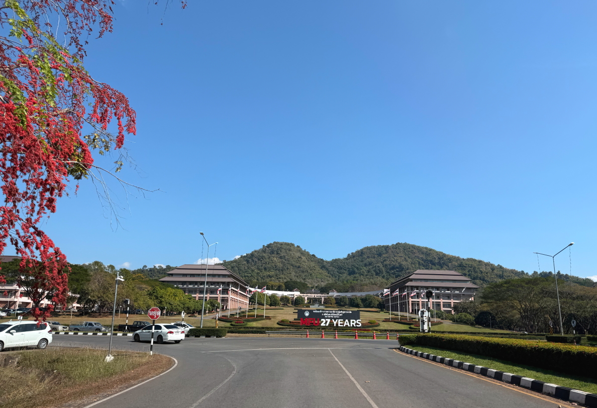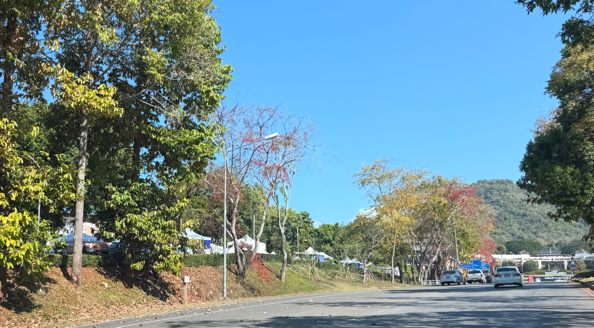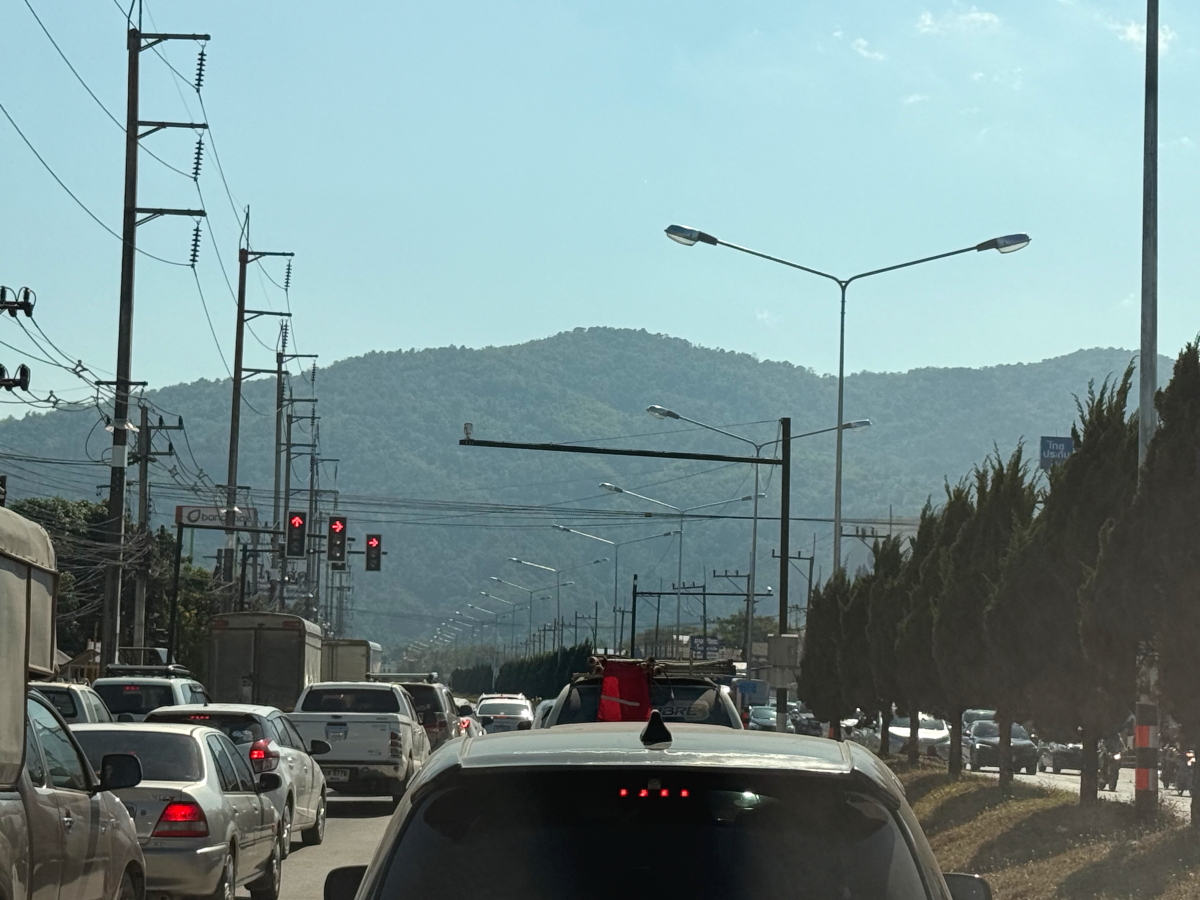 プール移動でメーチャンの街を通過、郊外の山肌が霞みながらも見えてます