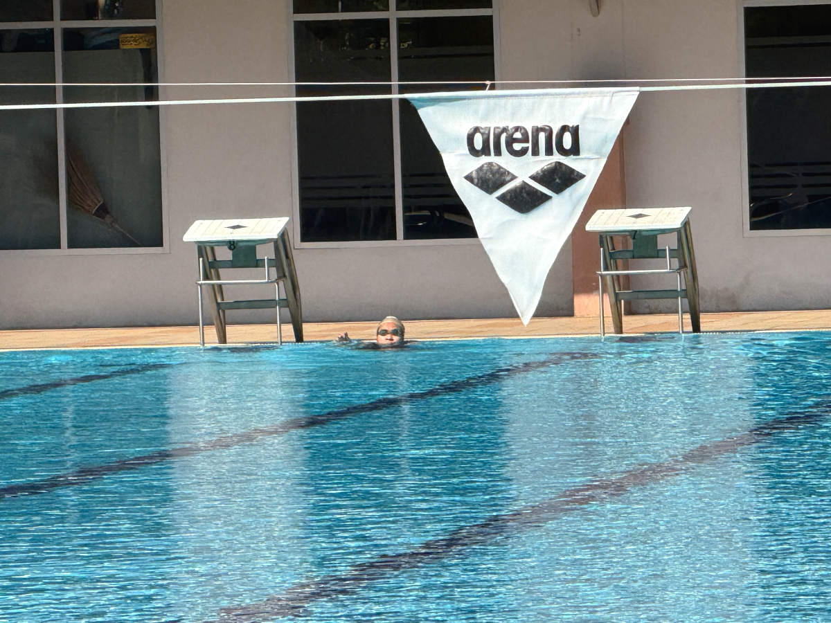 プールでは女子が特訓中