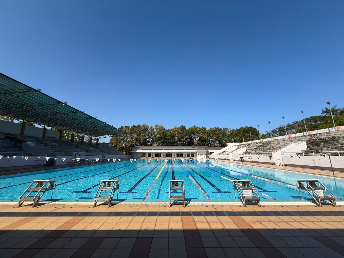 この日のプールも雲ひとつない青空で快適