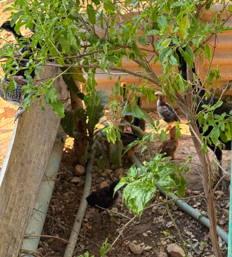 帰ると裏庭のヒナたちが、ご飯のおねだり
