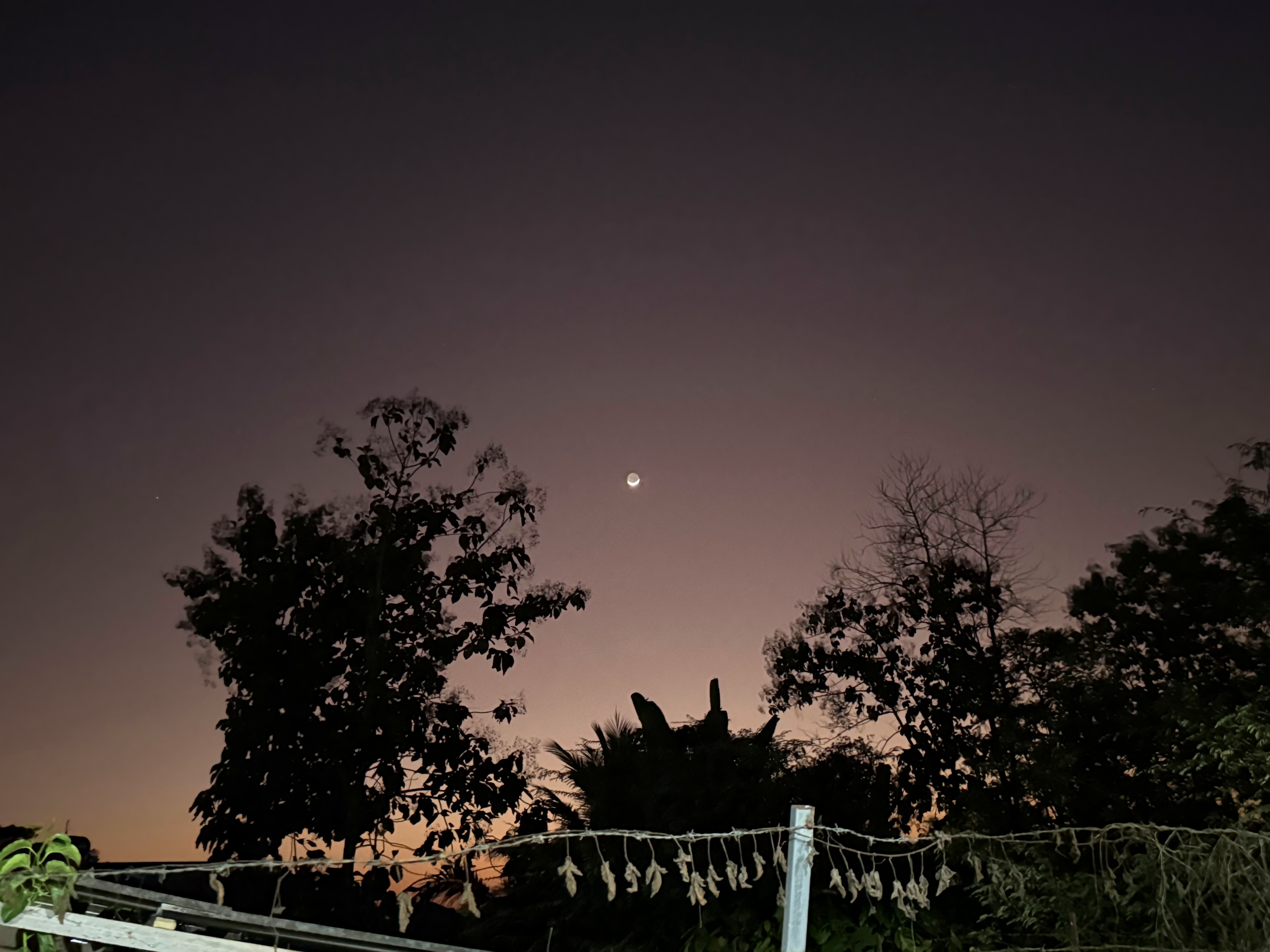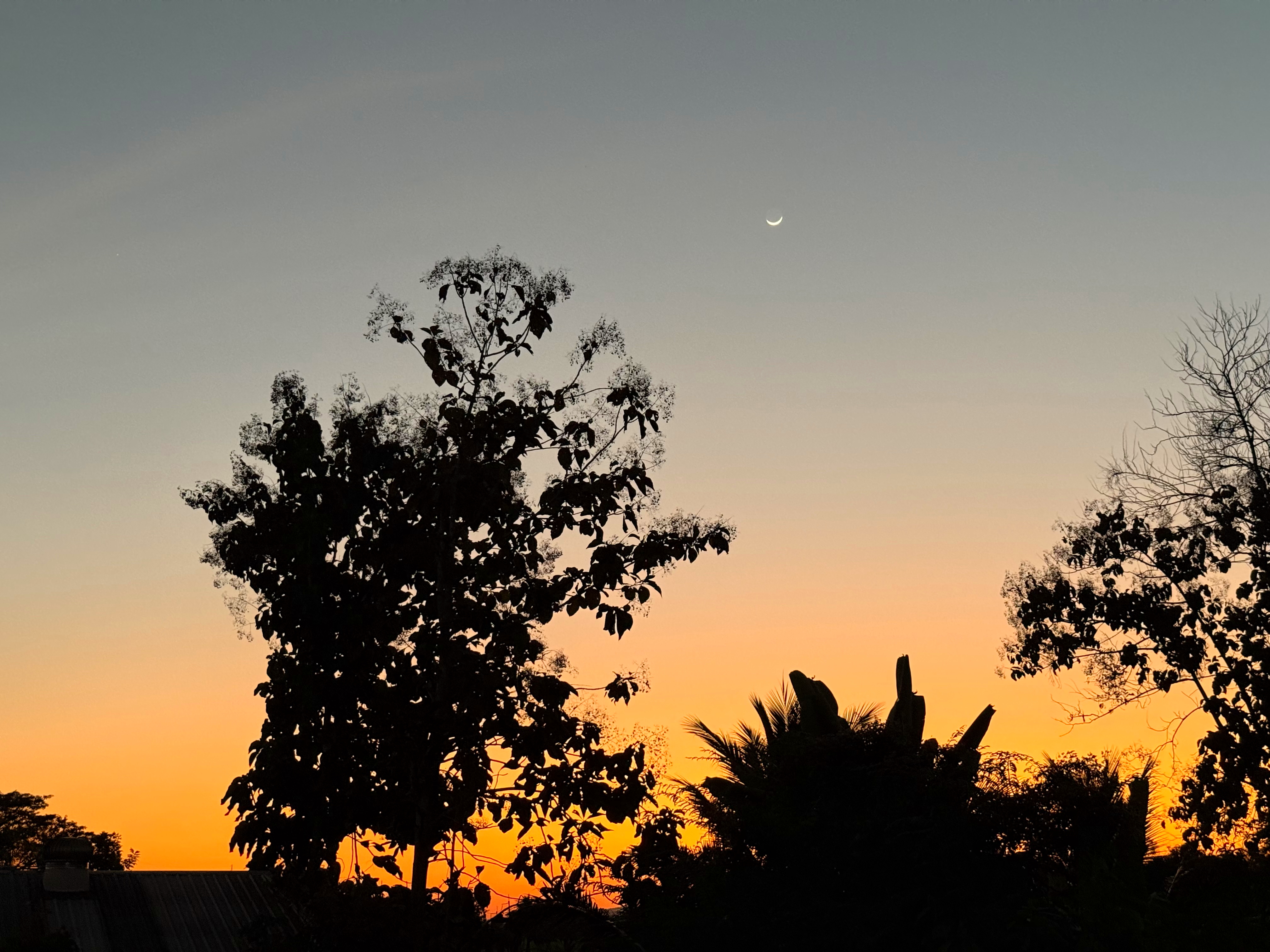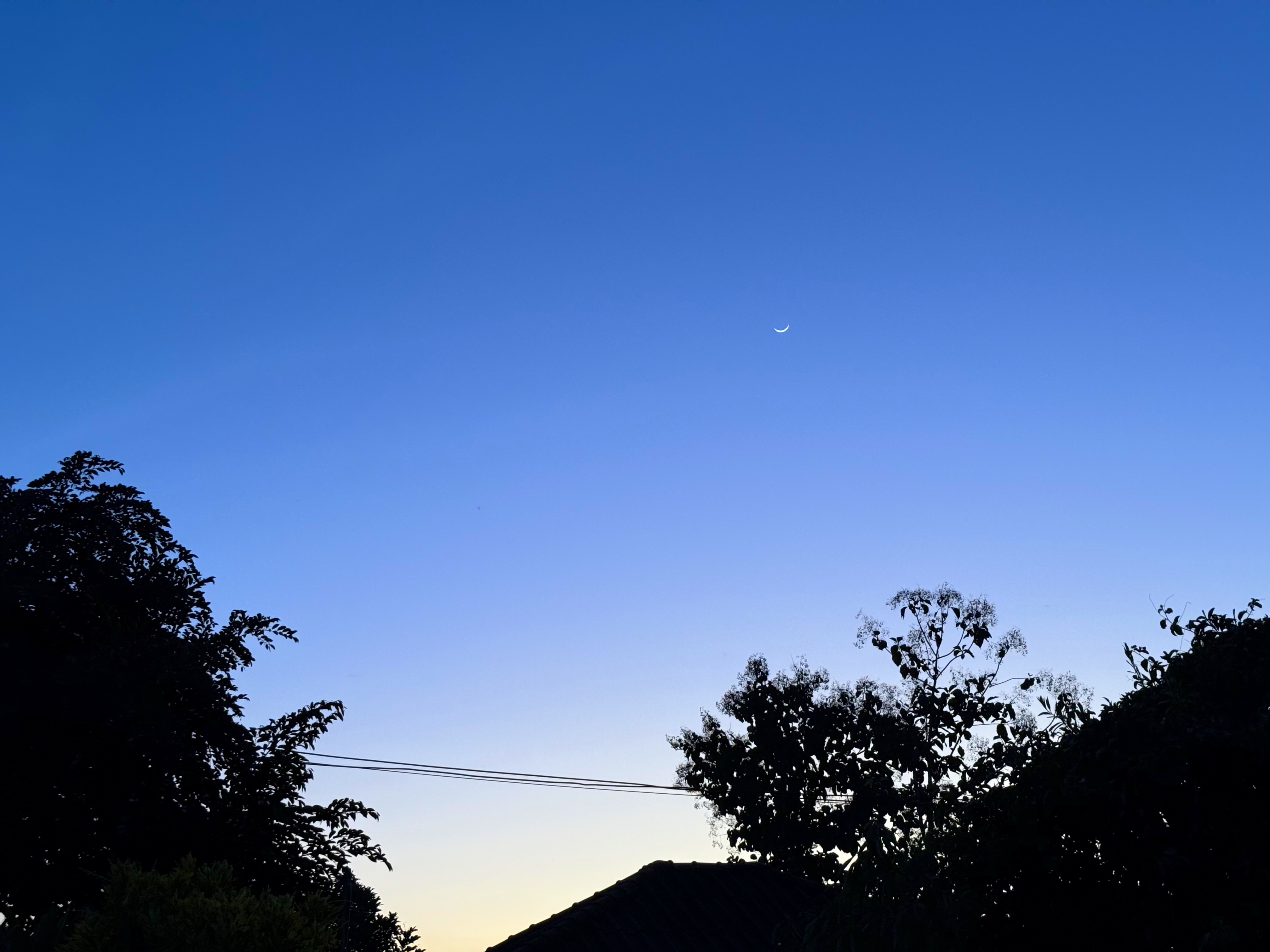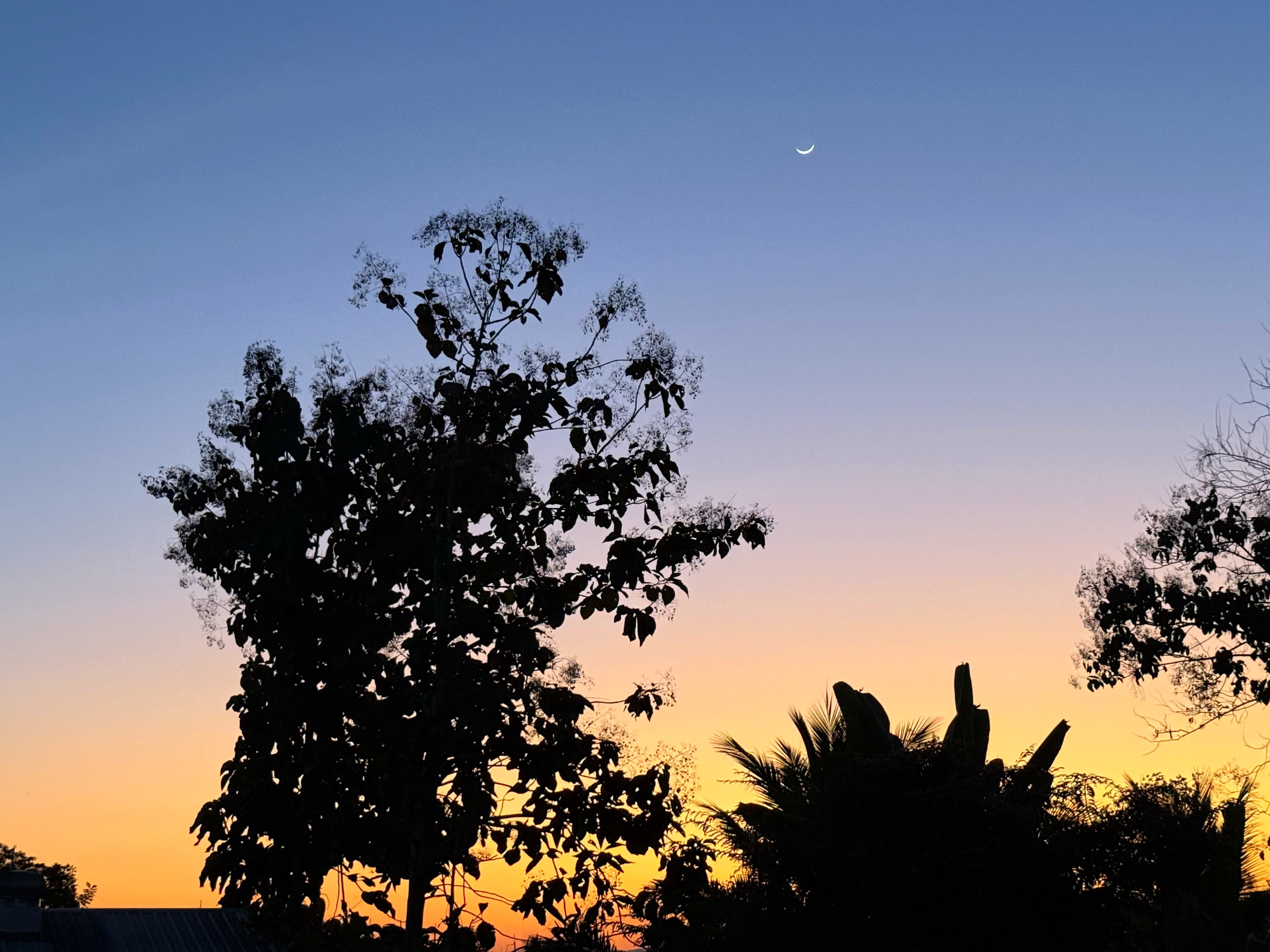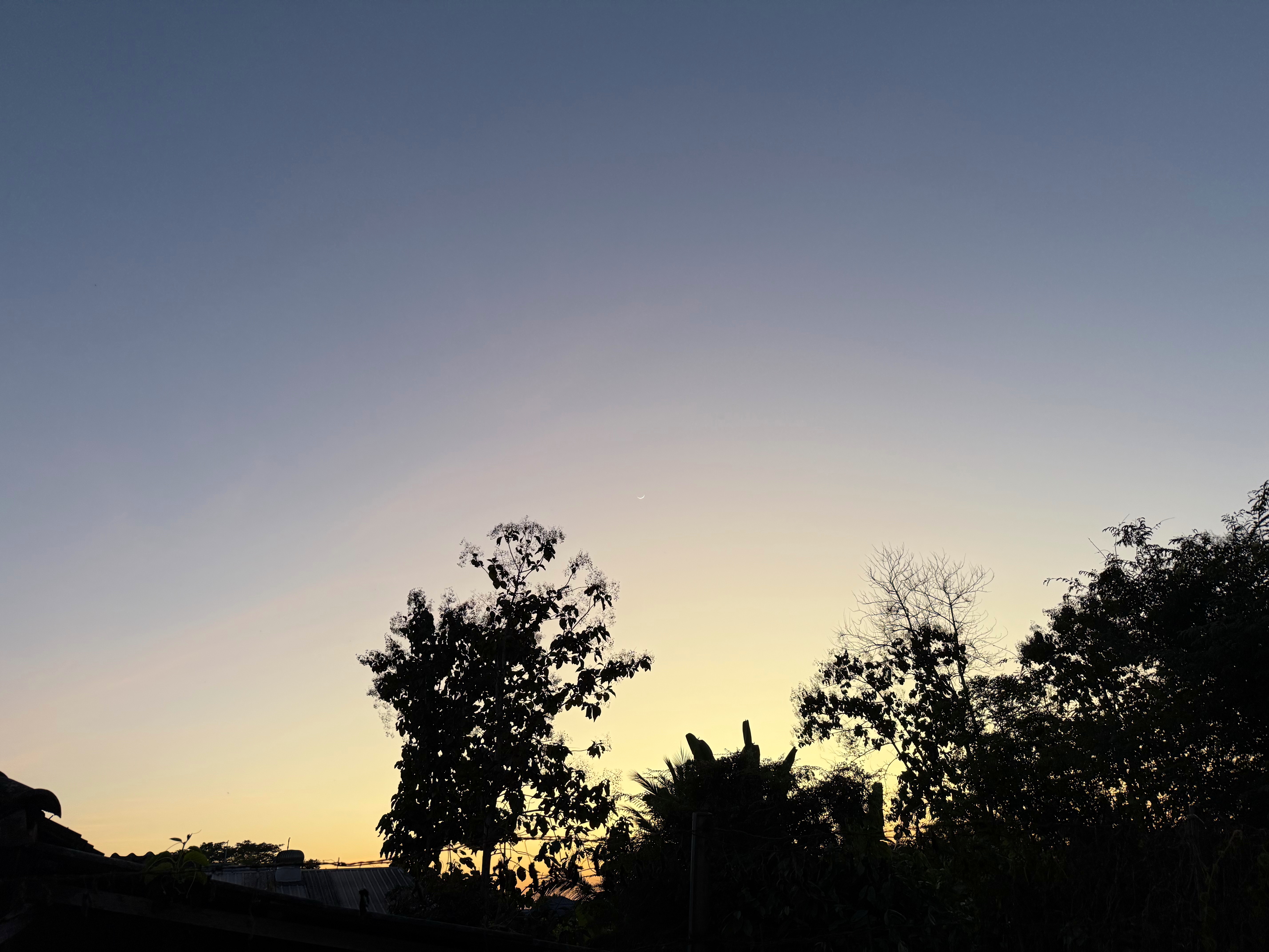 鳥さんは飛んで行きましたが、木の右上に細い月が浮かびました