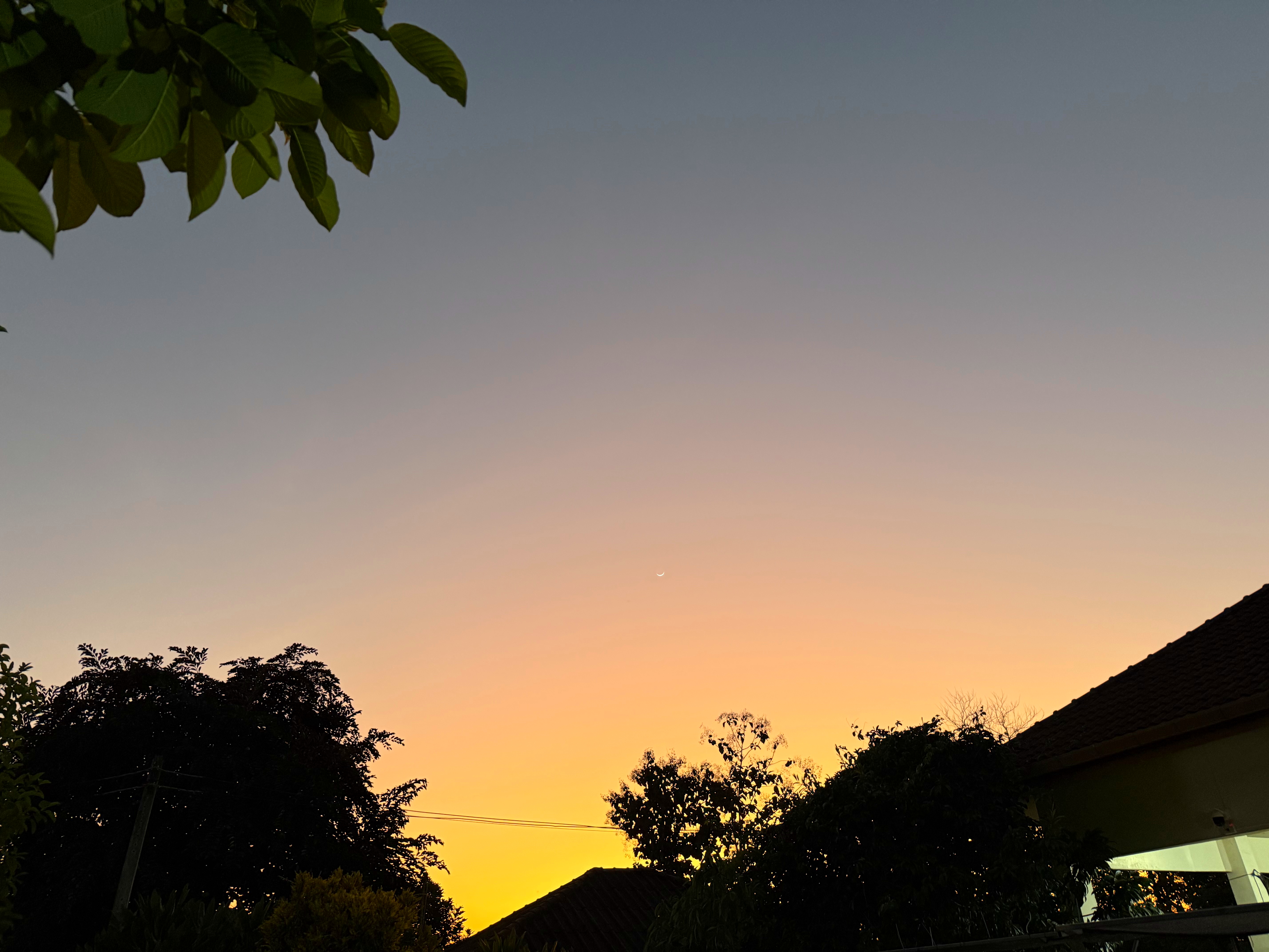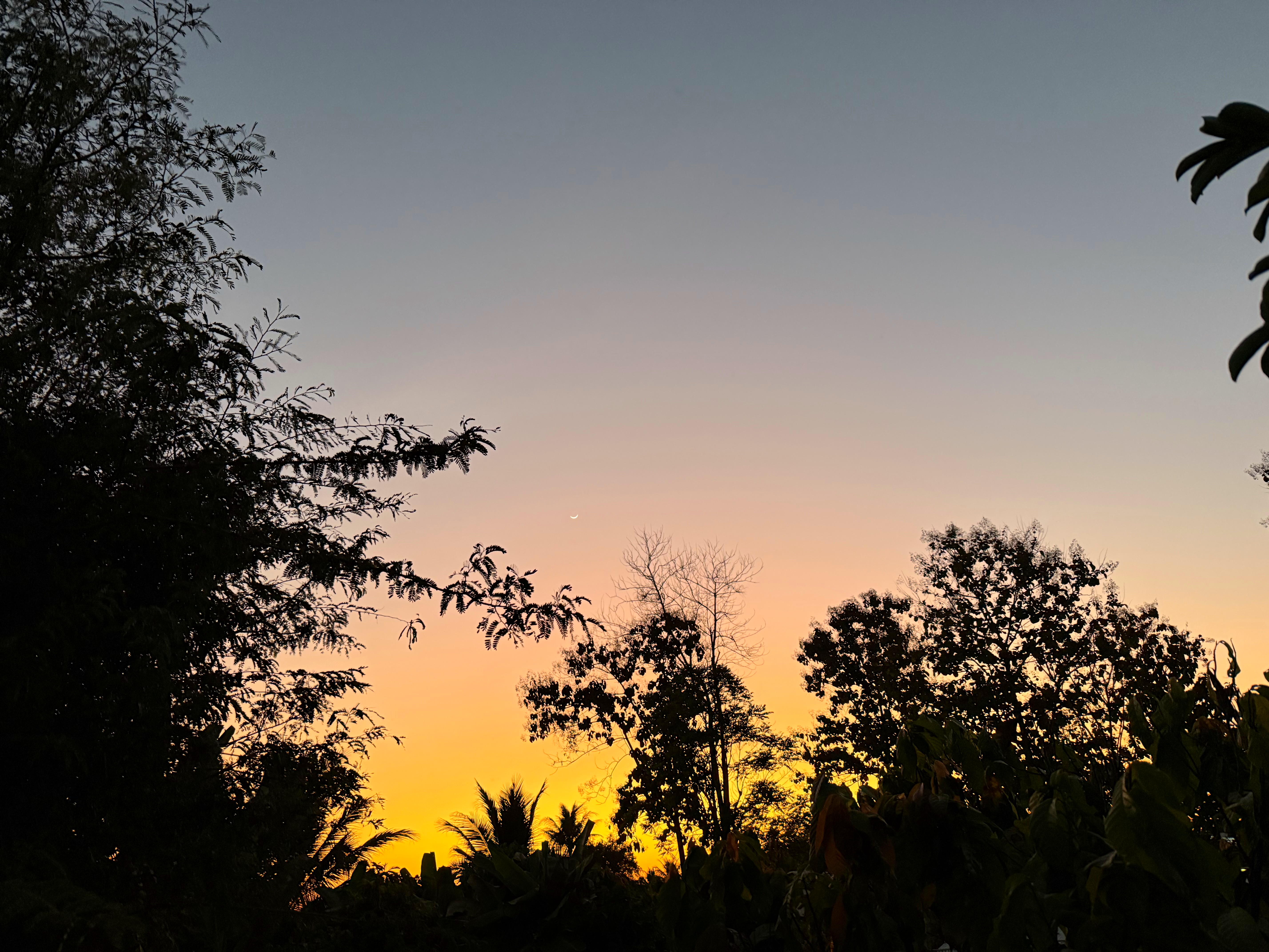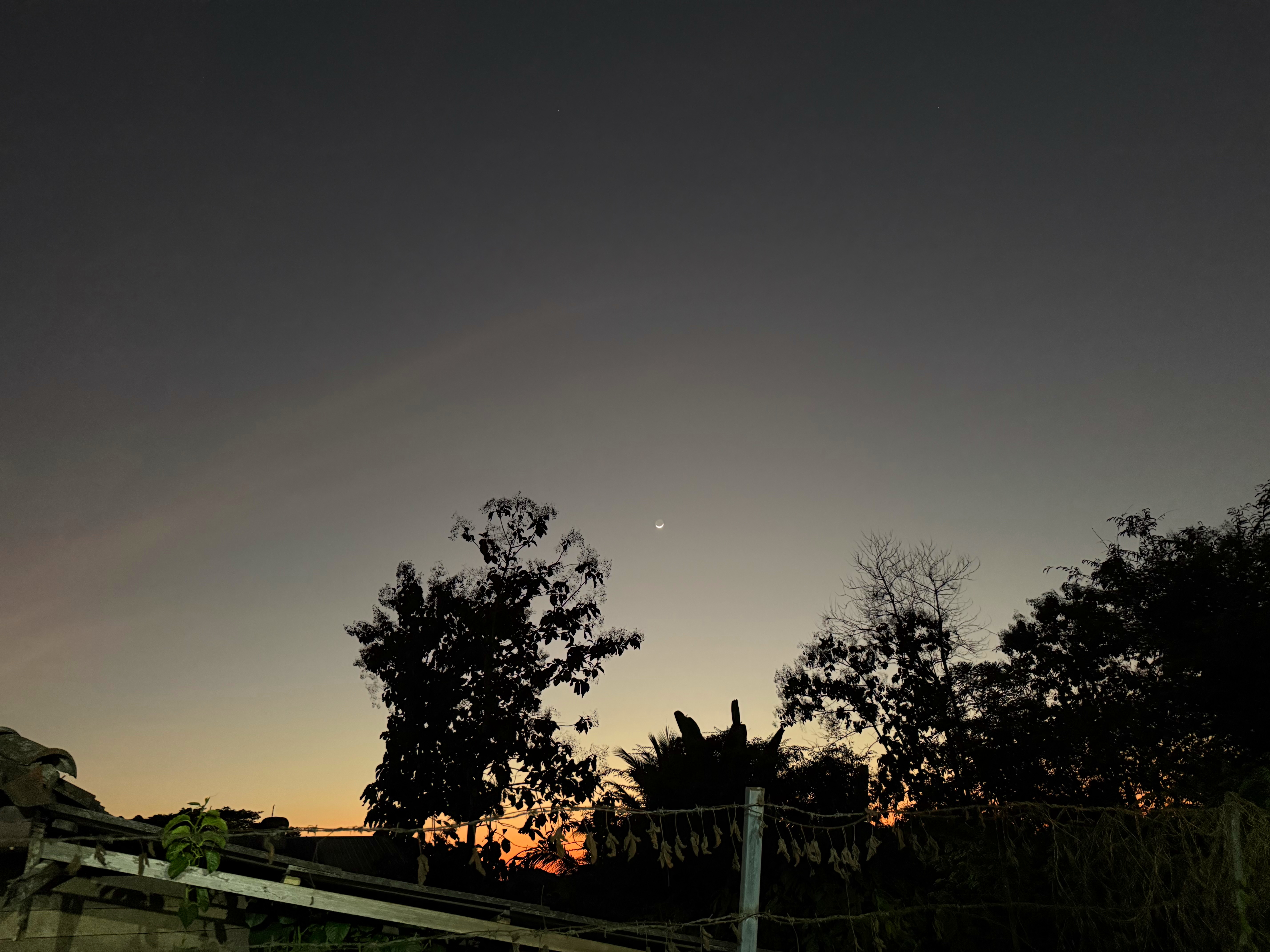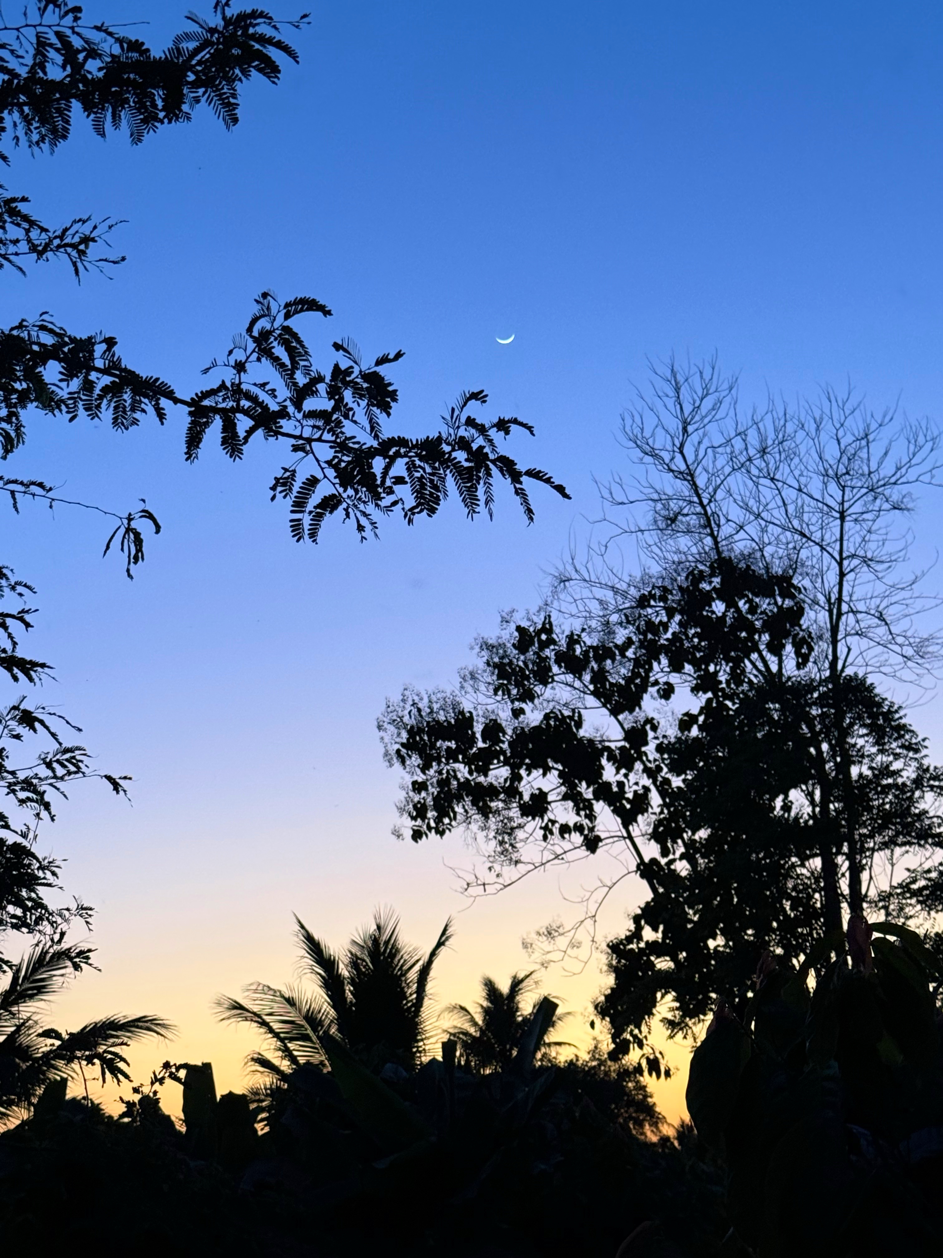 鳥さんは飛んで行きましたが、木の右上に細い月が浮かびました