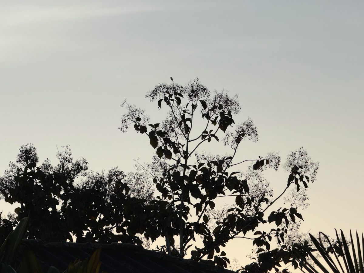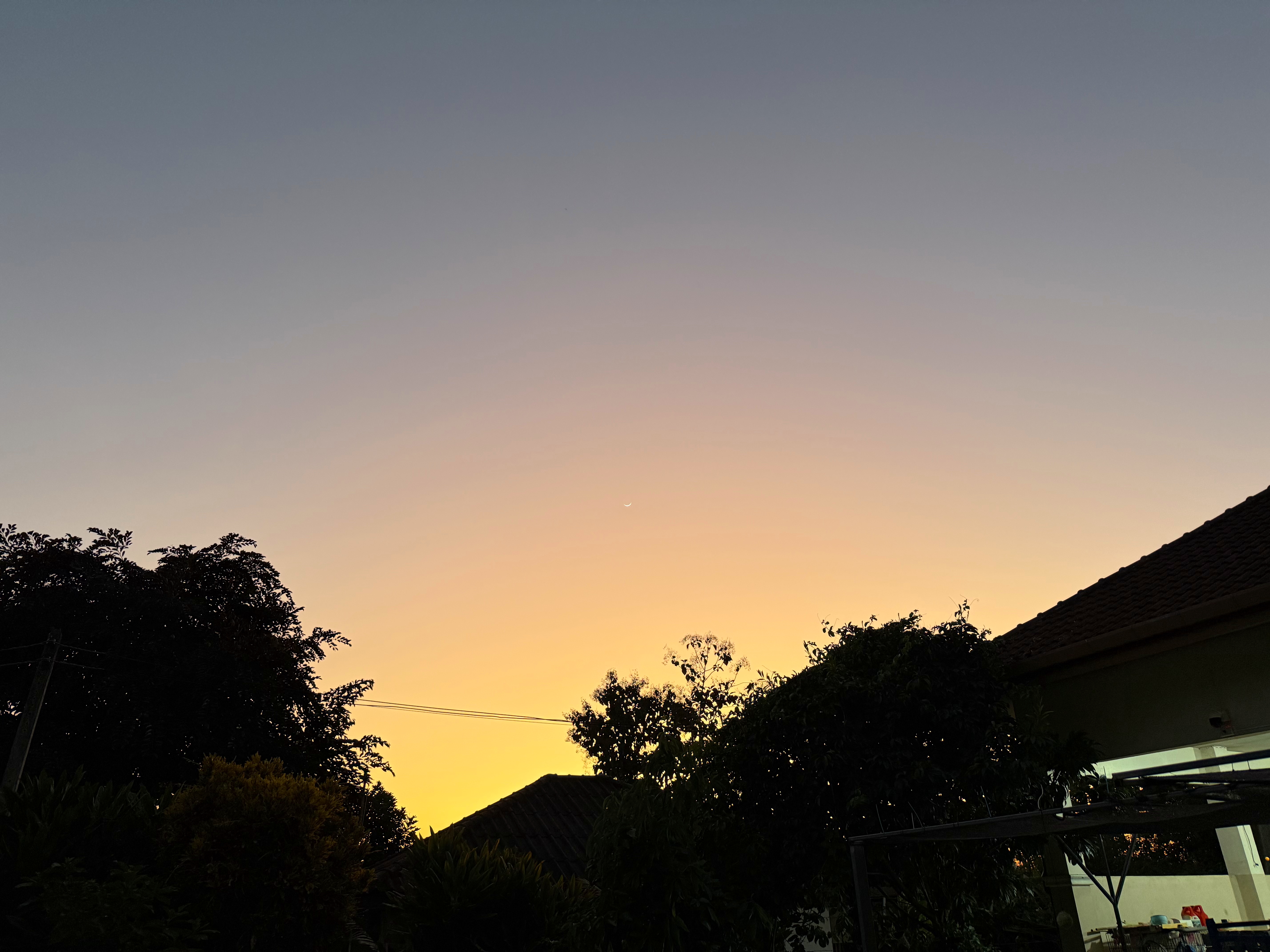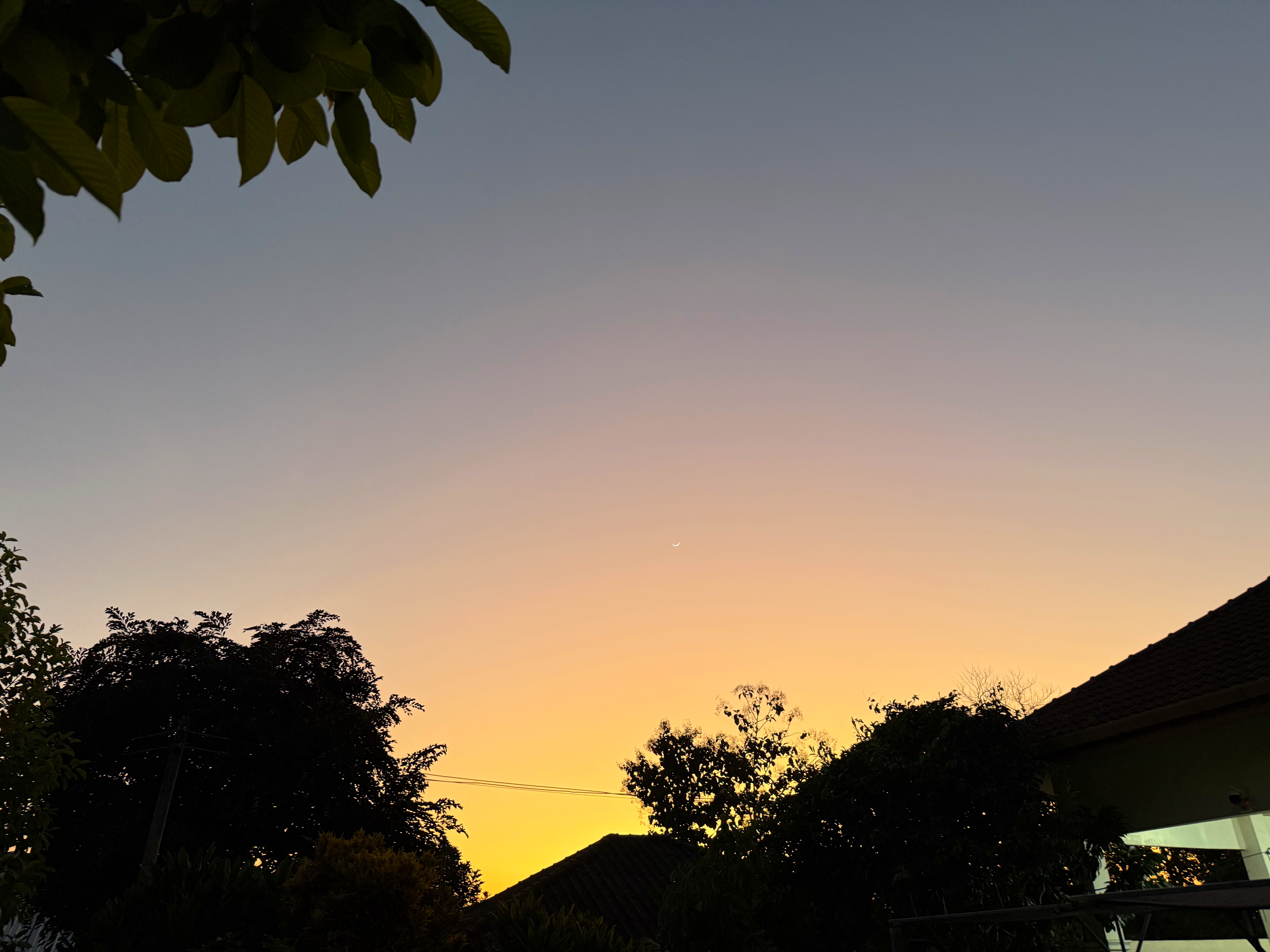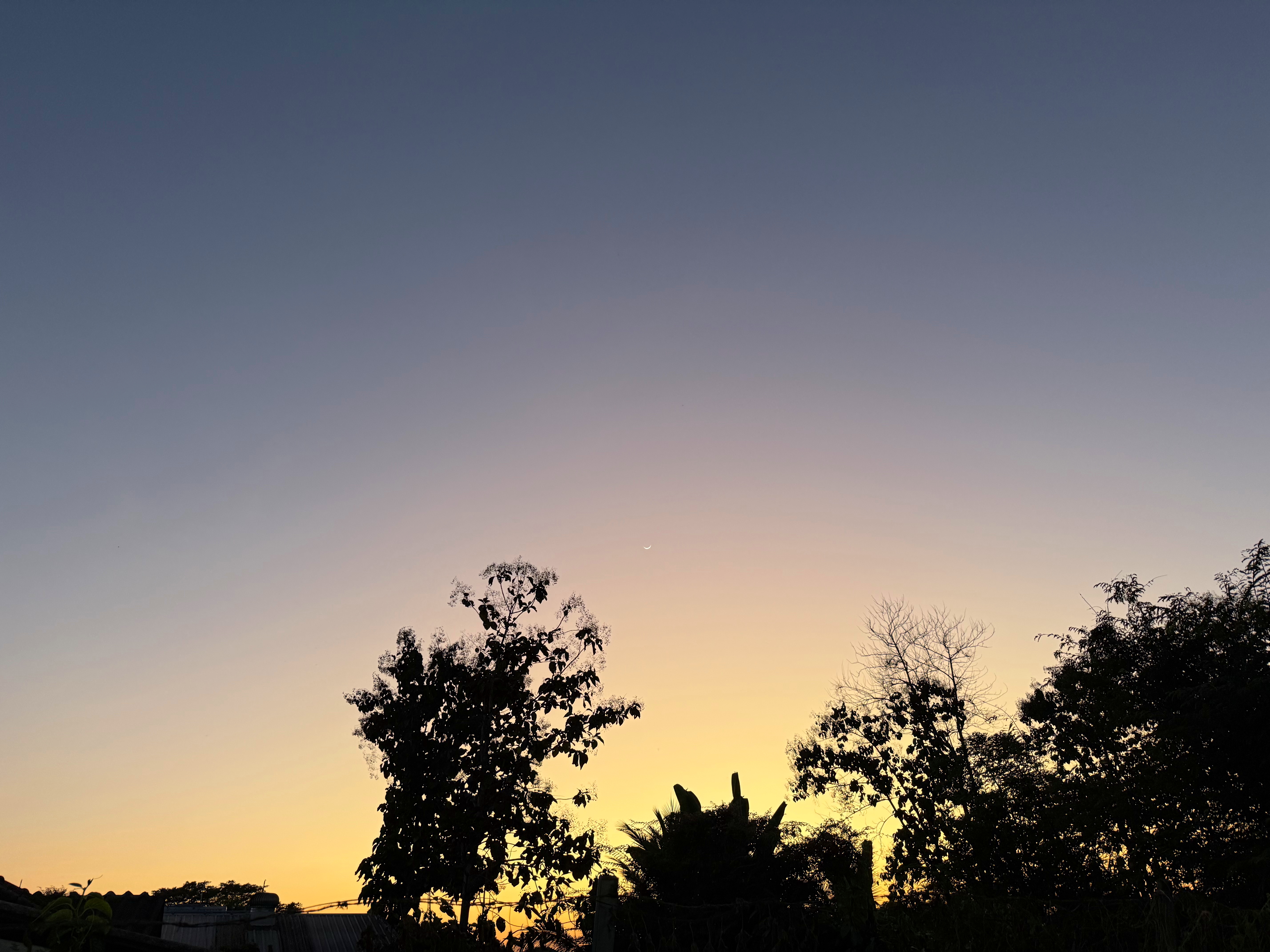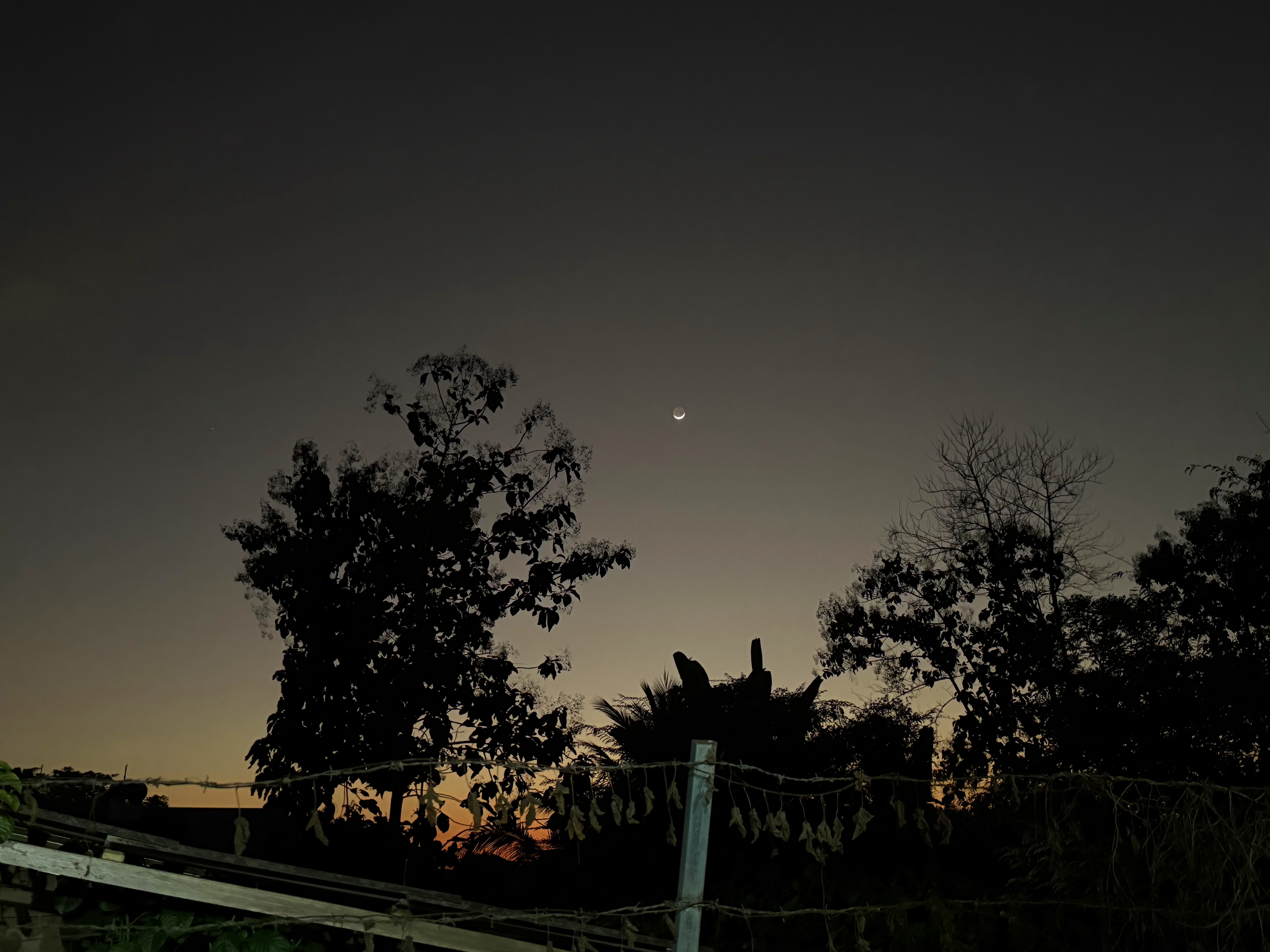 鳥さんは飛んで行きましたが、木の右上に細い月が浮かびました