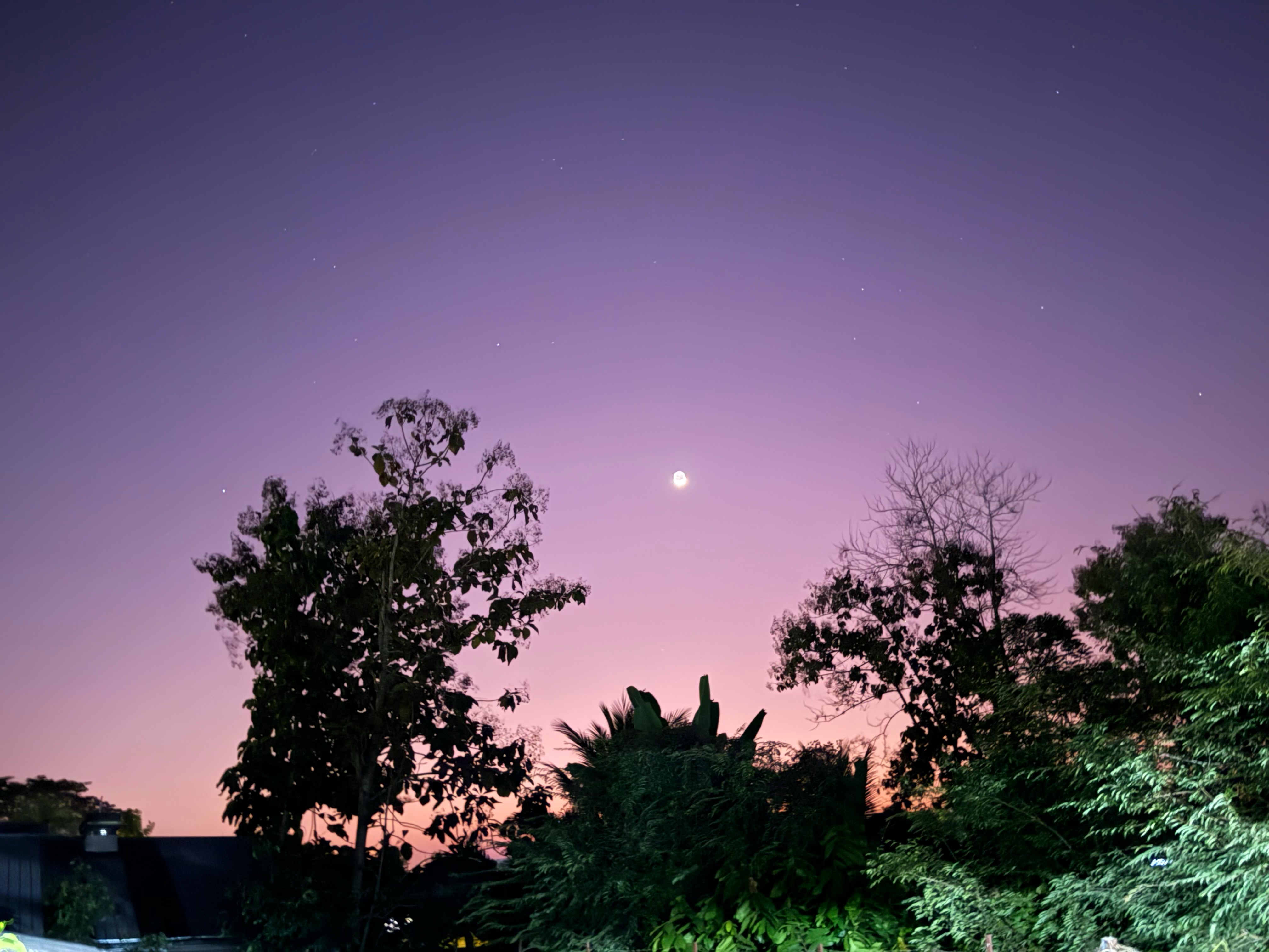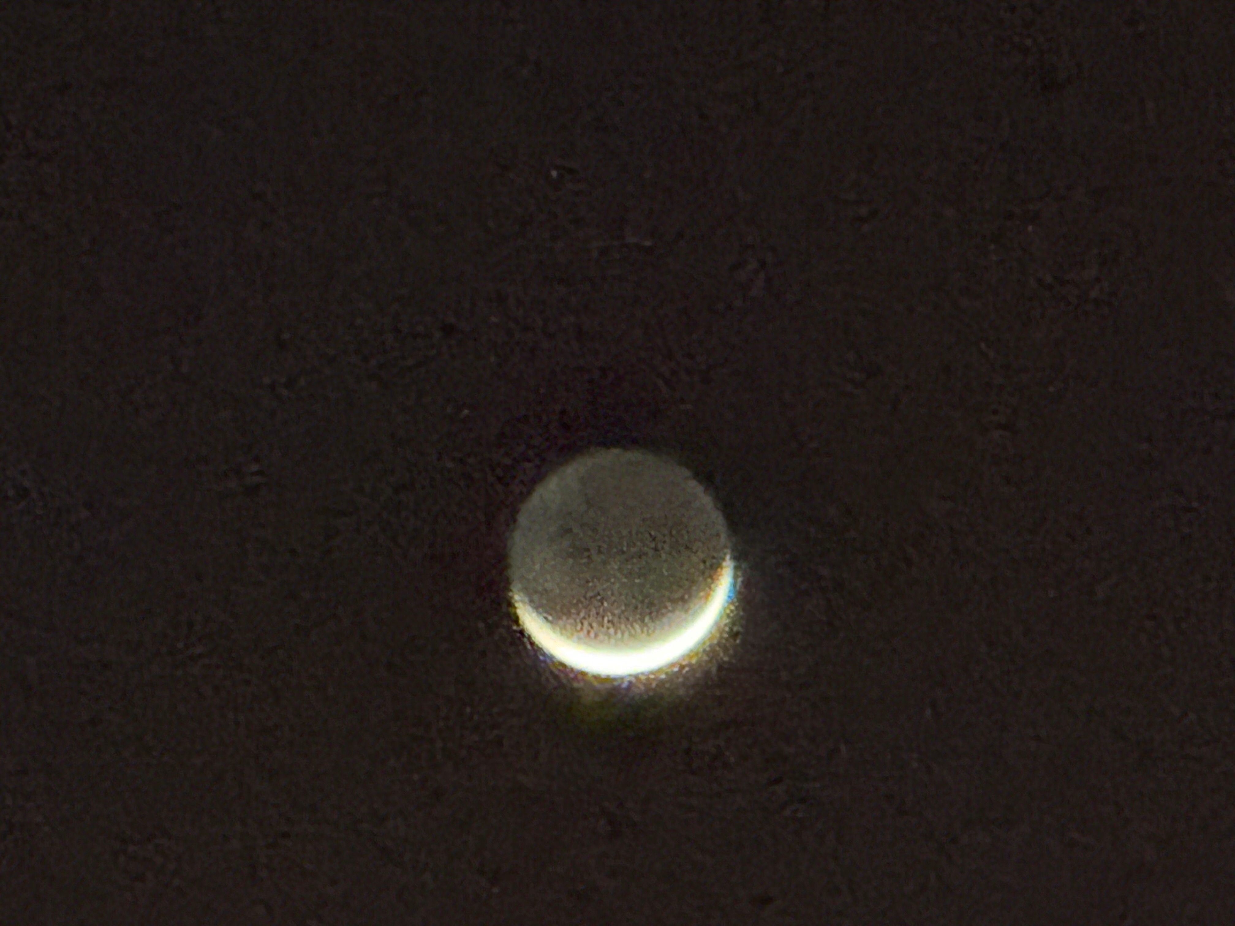 お月様の周辺を少しズームしたら、スマホカメラが色の認識ミスで空が青色に!?