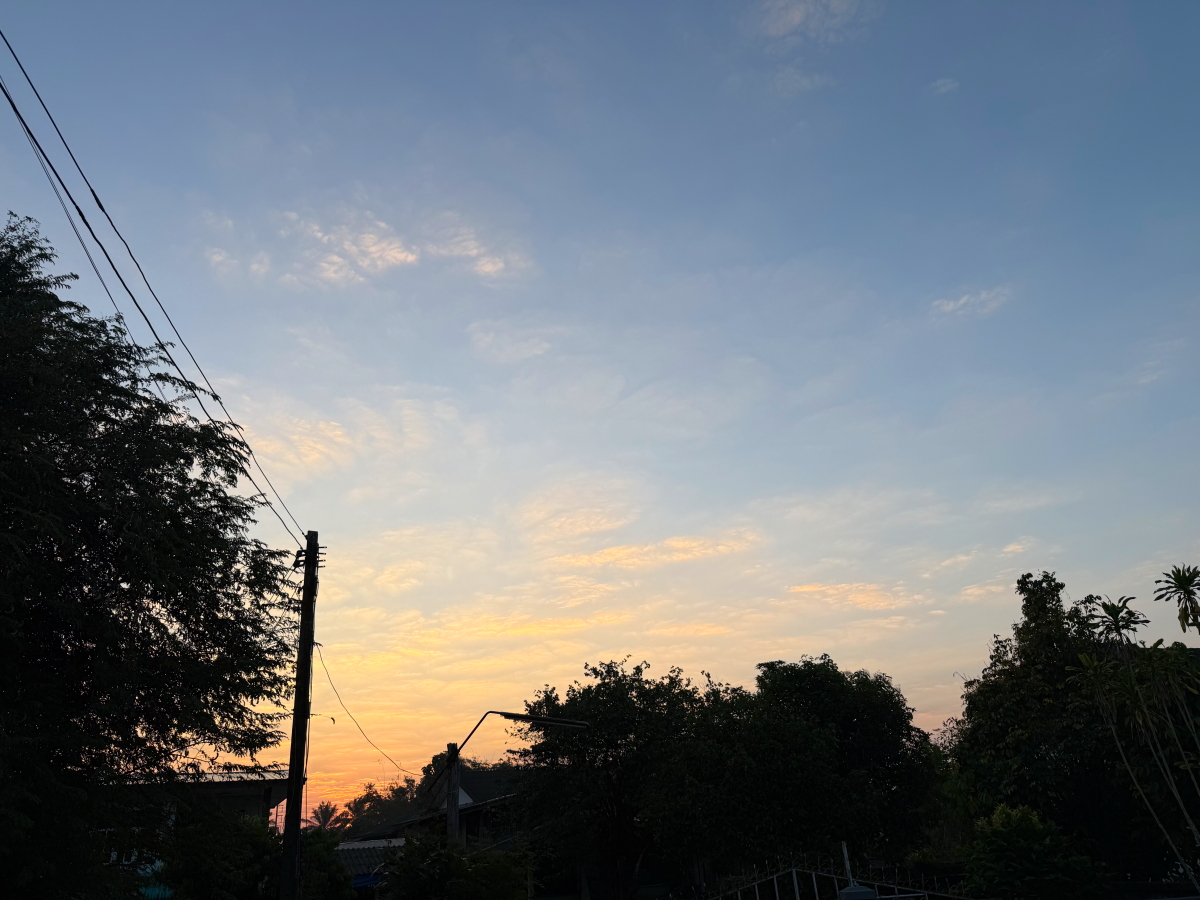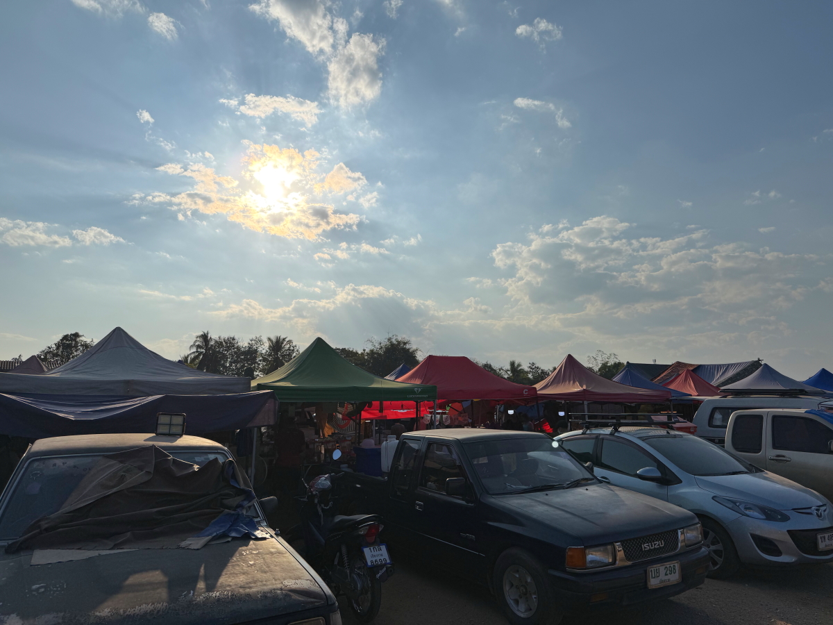 市場越しに見える西の空には低い太陽からサンピラーが伸びてました