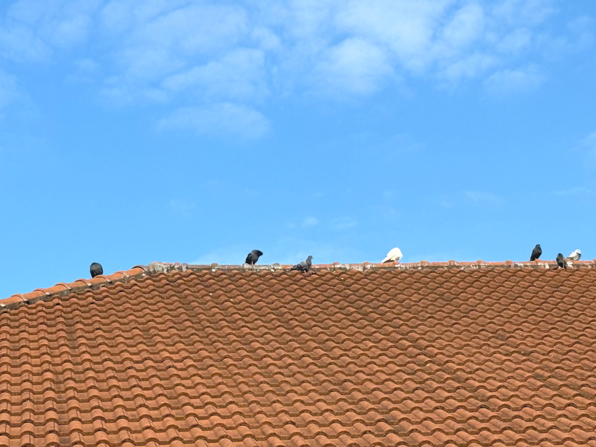 鳥さん達はすでに屋根上から見つめています
