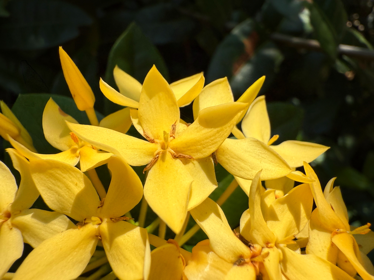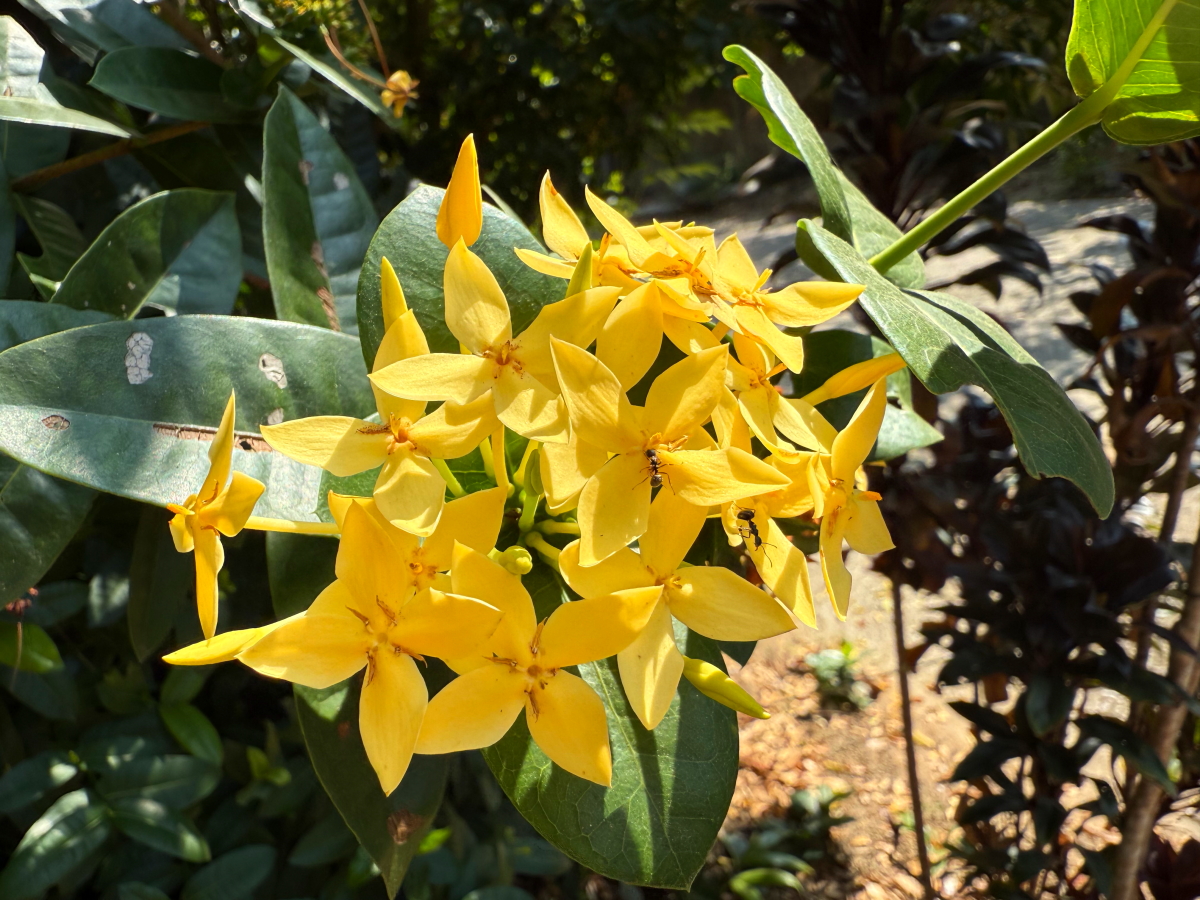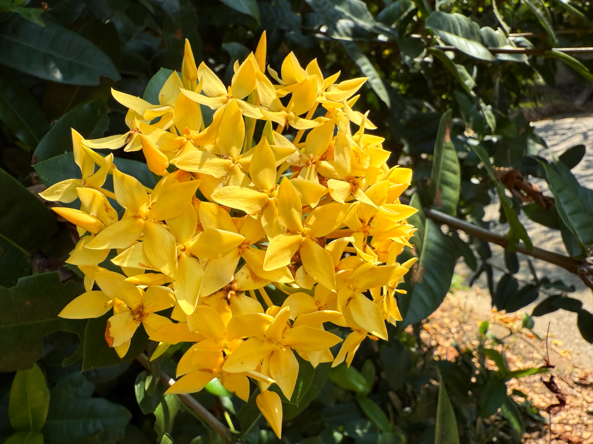 木に咲いたお花にも朝陽がさしてニッコリ、こんにちは!