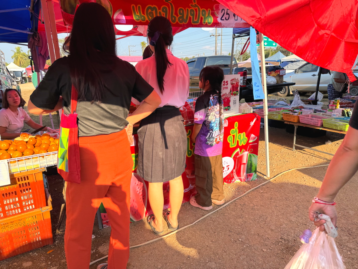 搾りたてジュースの屋台は、女の子に人気