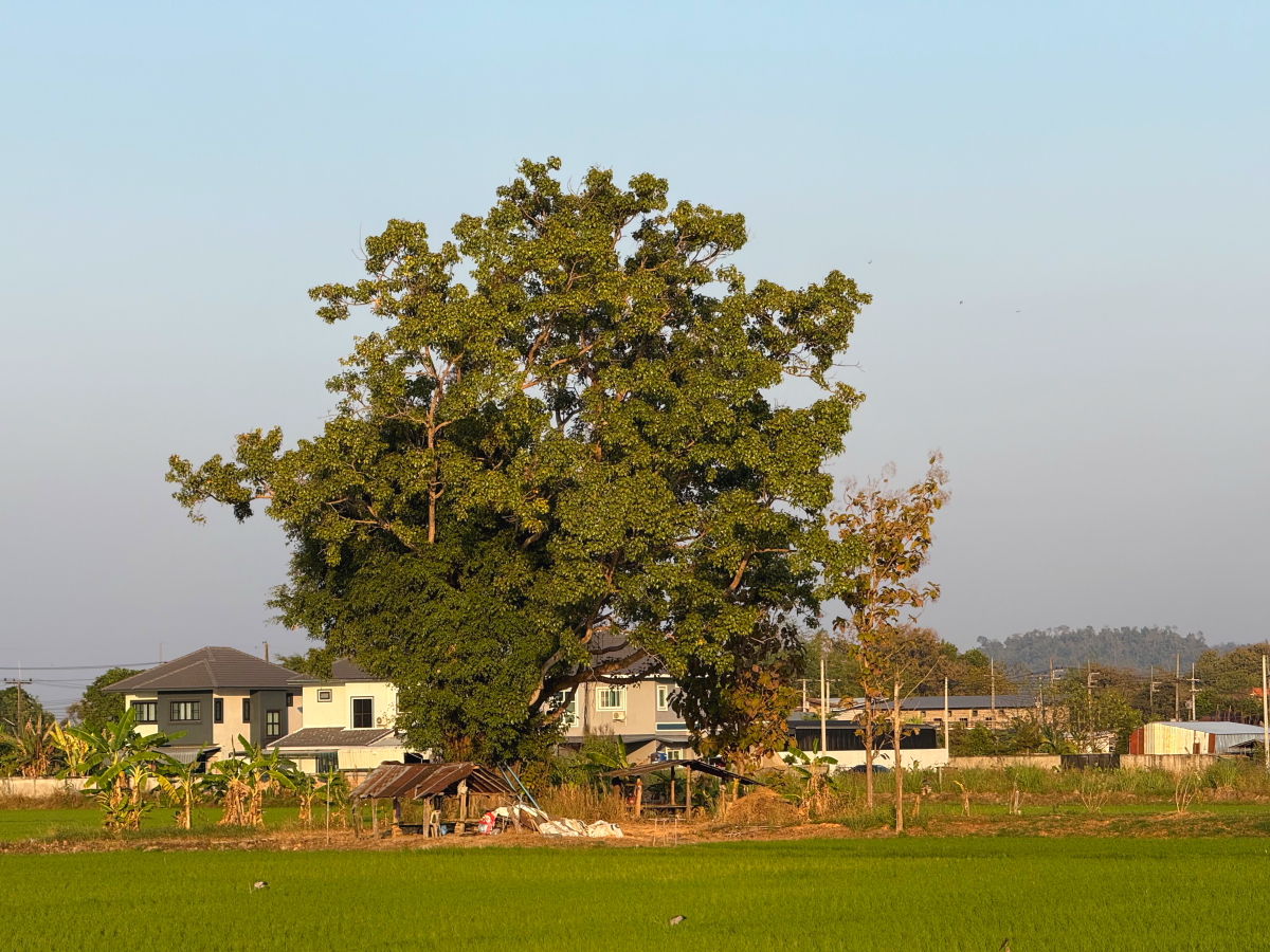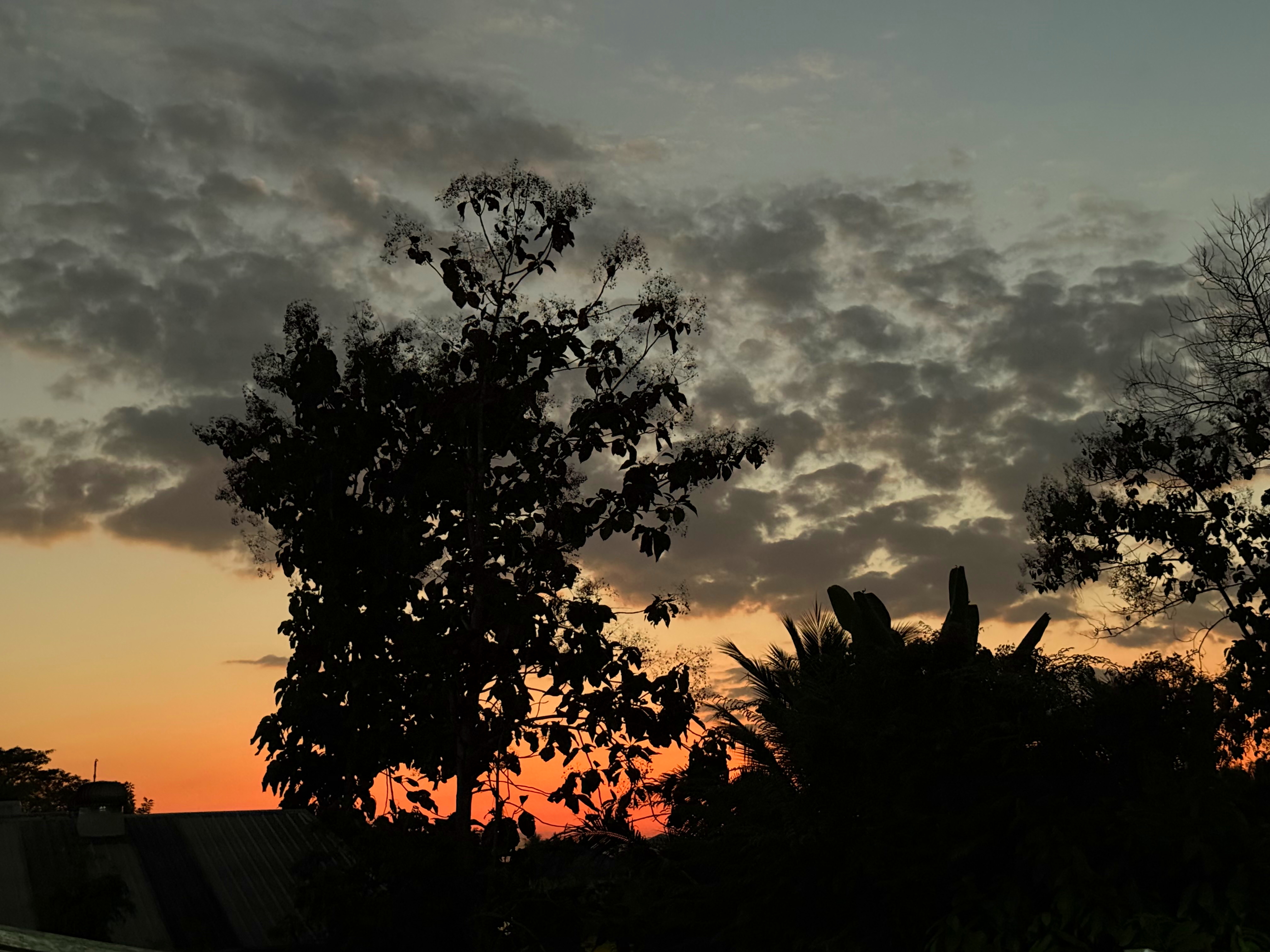 農作業休憩所の木をアップにしてみました、日中は木陰になる休憩小屋にも西陽が当たってます