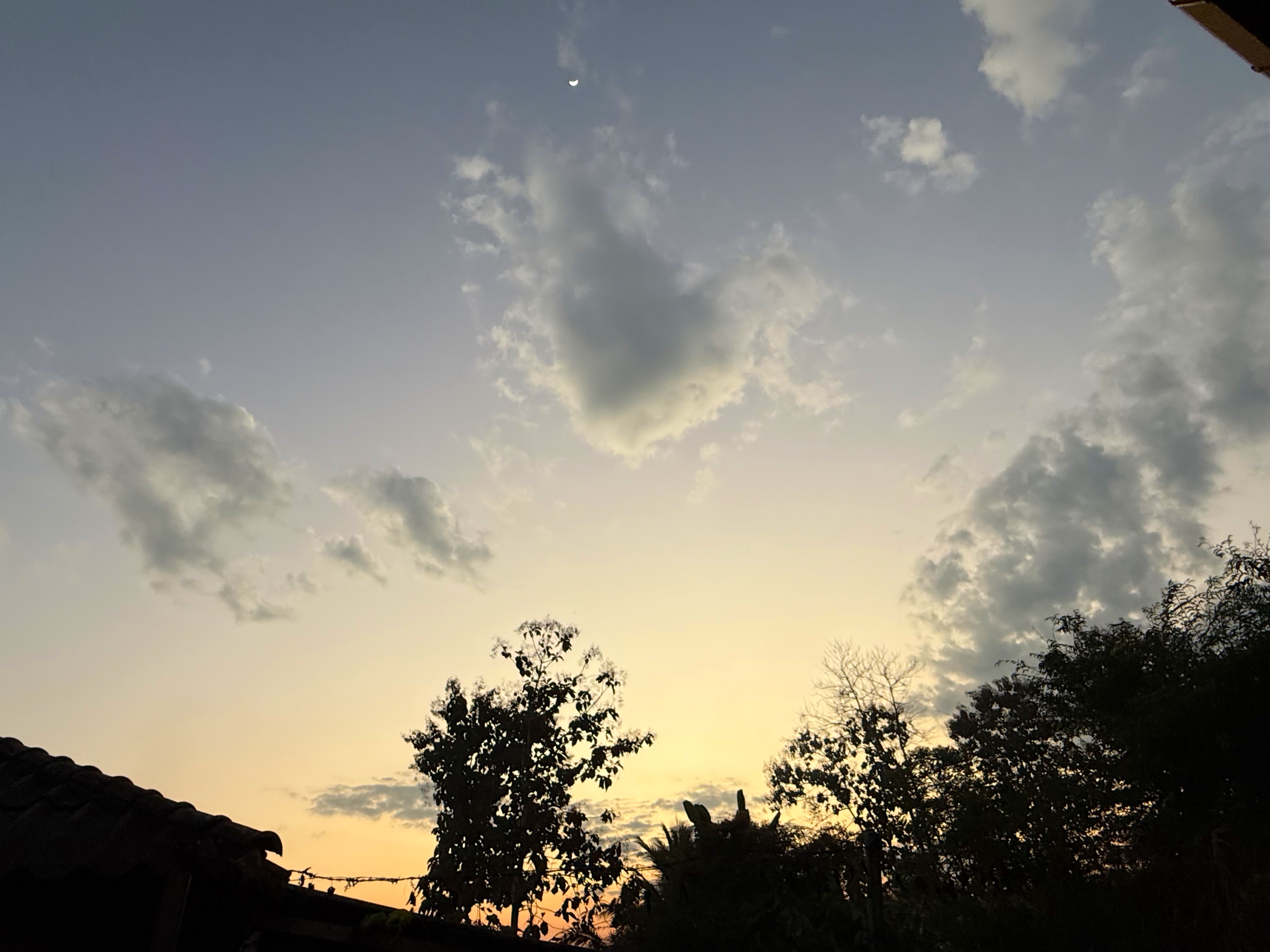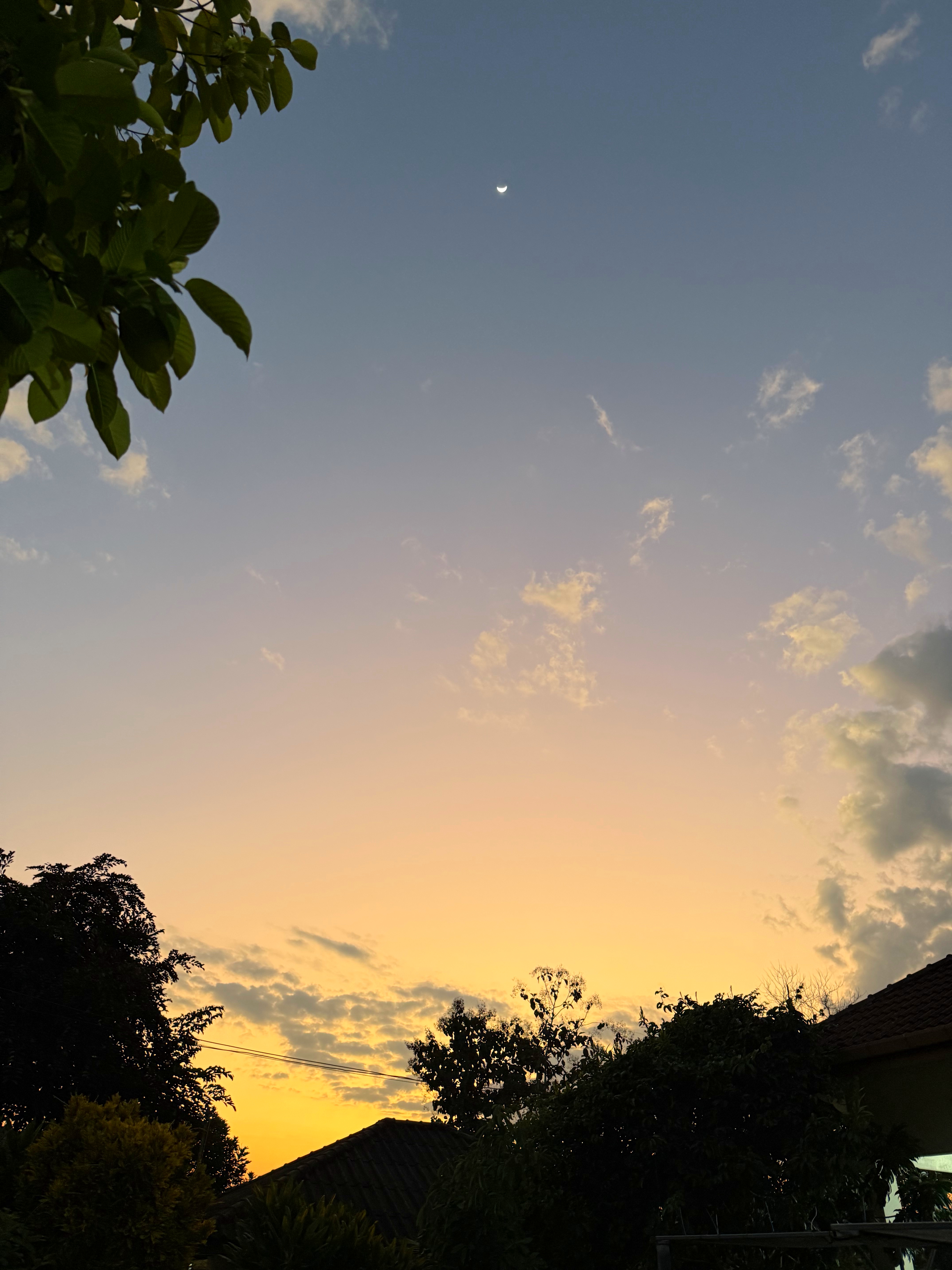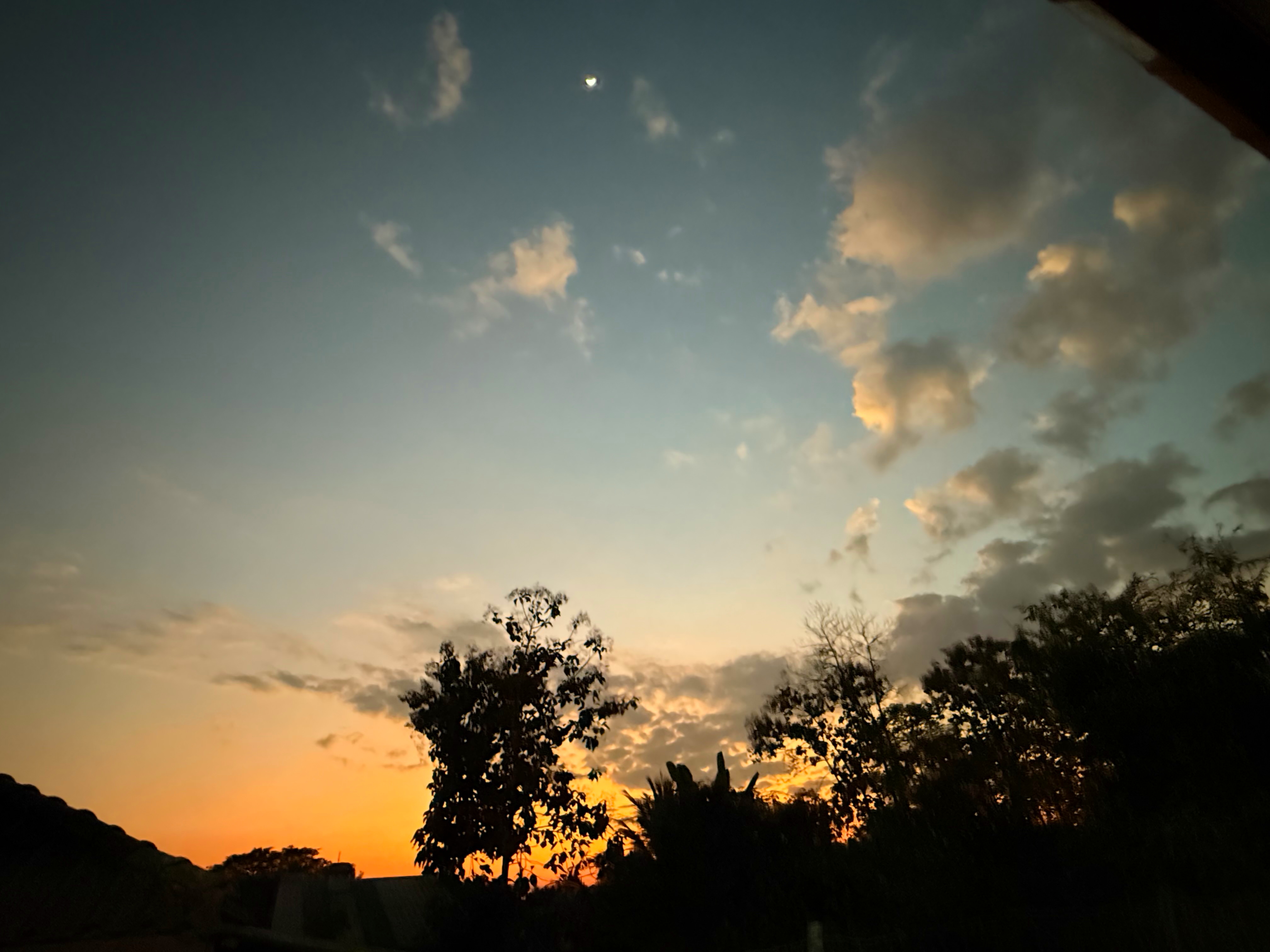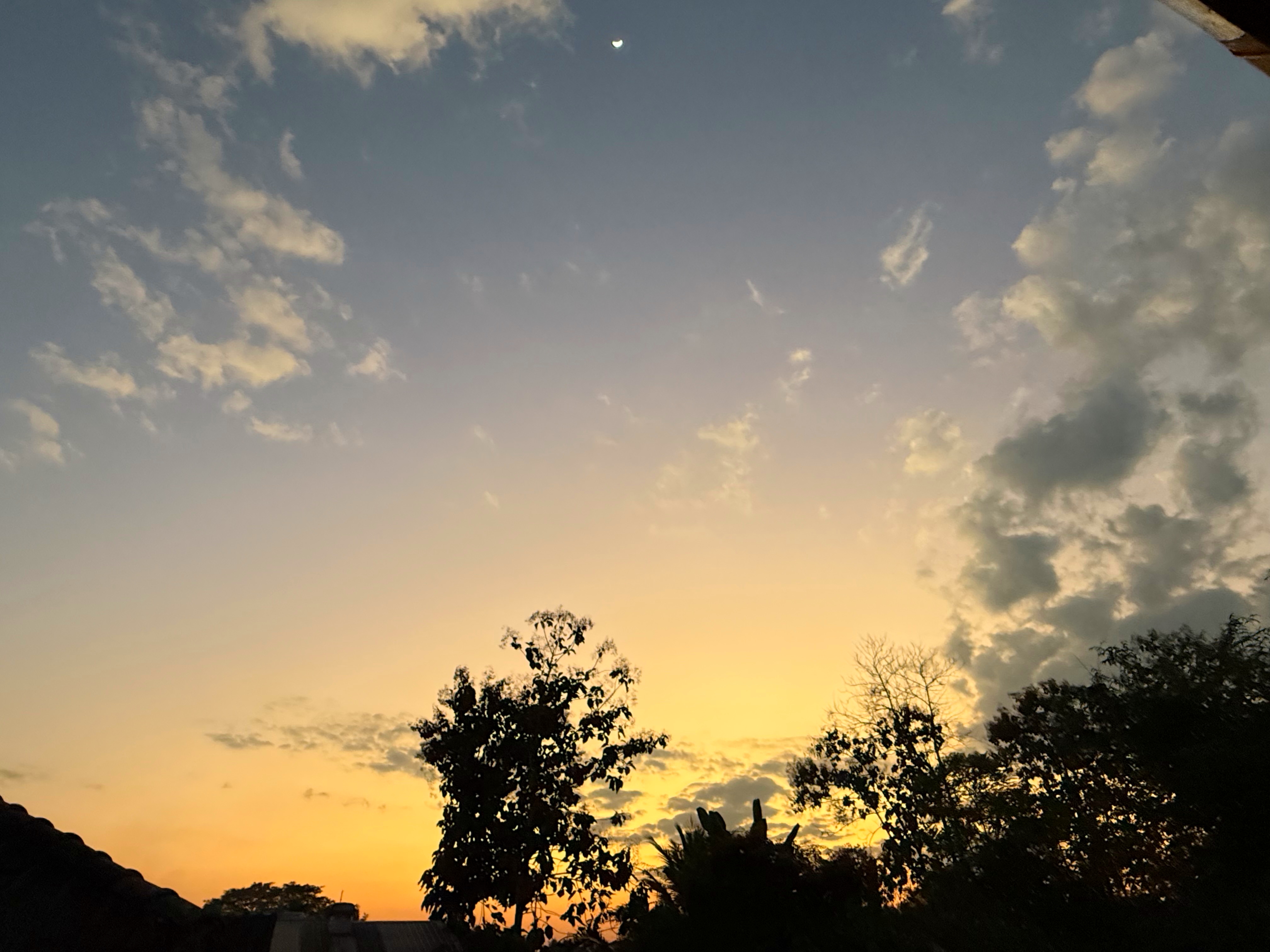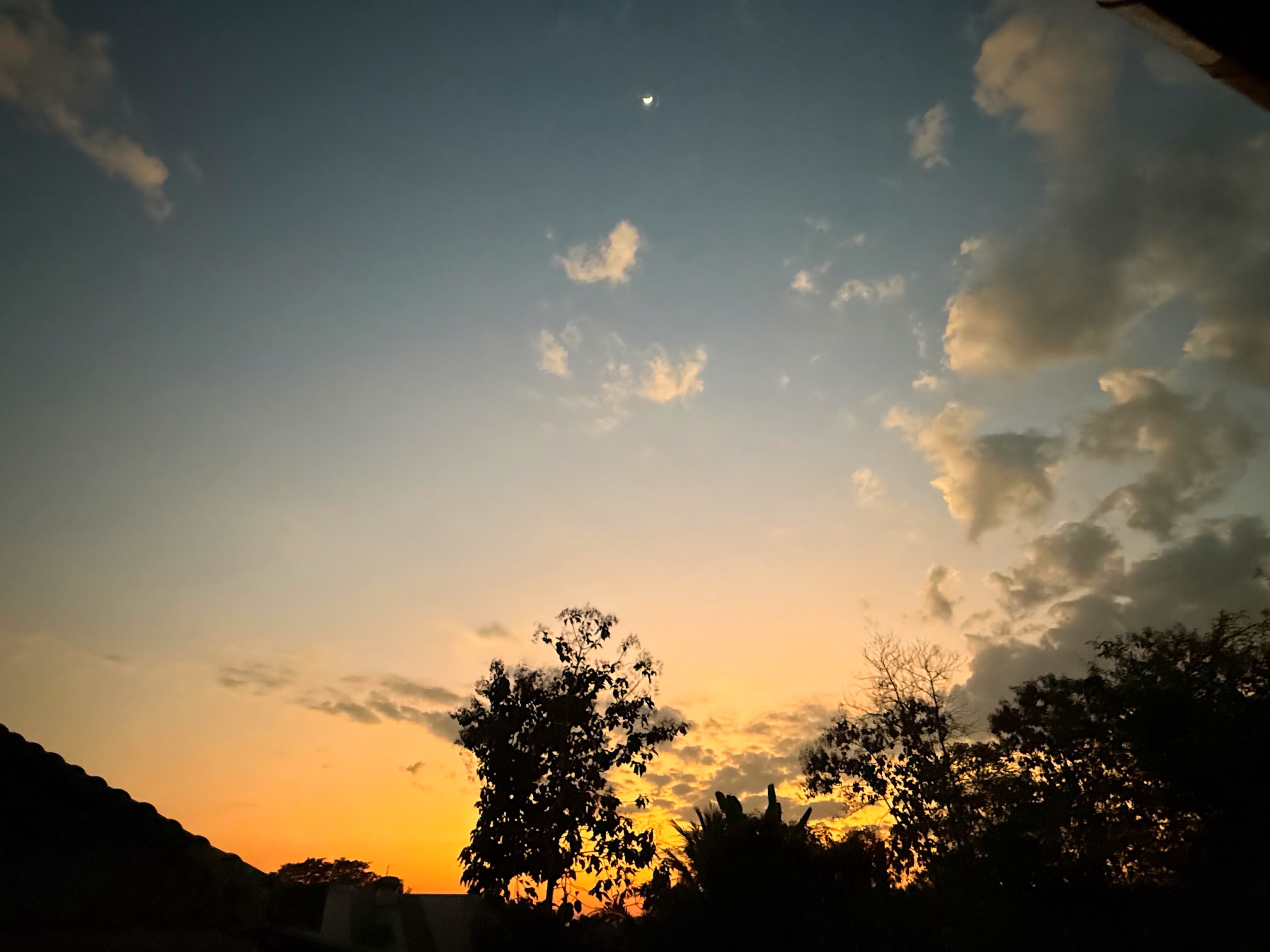 夕暮れオレンジになると、お月様もみやすくなってきました