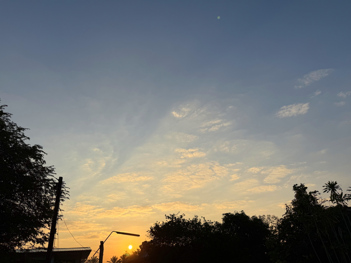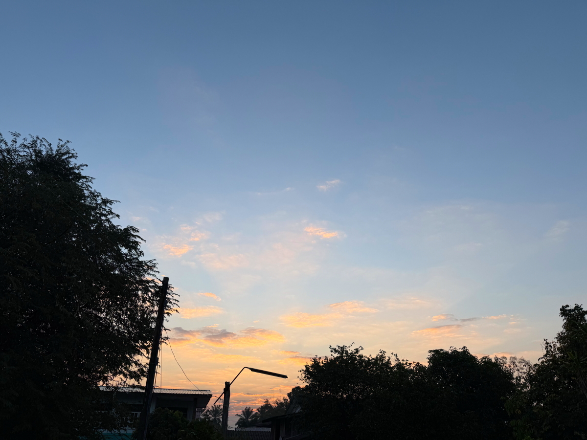 朝焼け空から知り合いの喫茶店、プール帰りの市場で知り合いの尼僧さん達に出会って、夕暮れ定点観測まででした