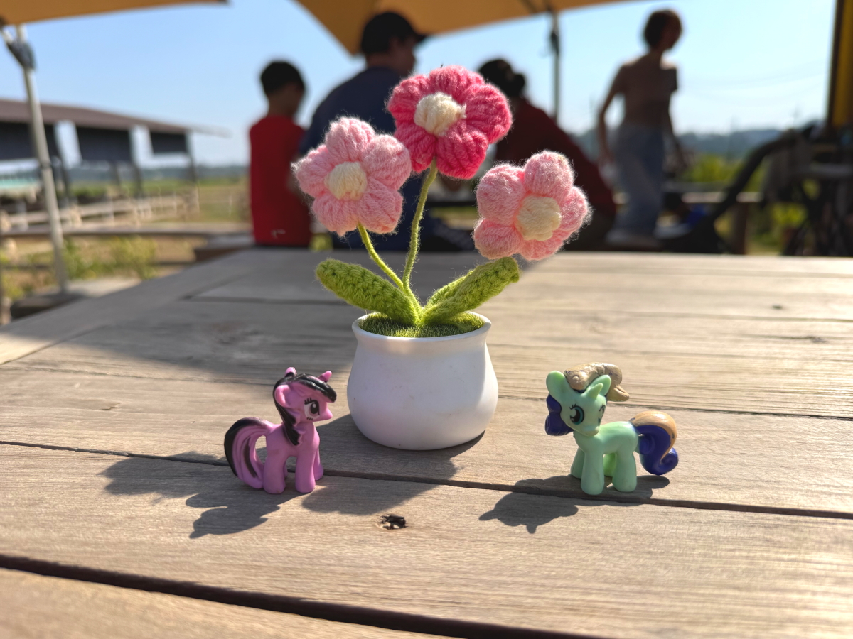 テーブルの上には可愛い置物のお花