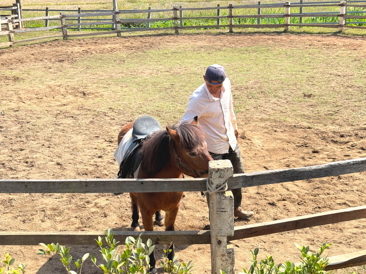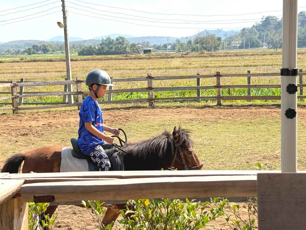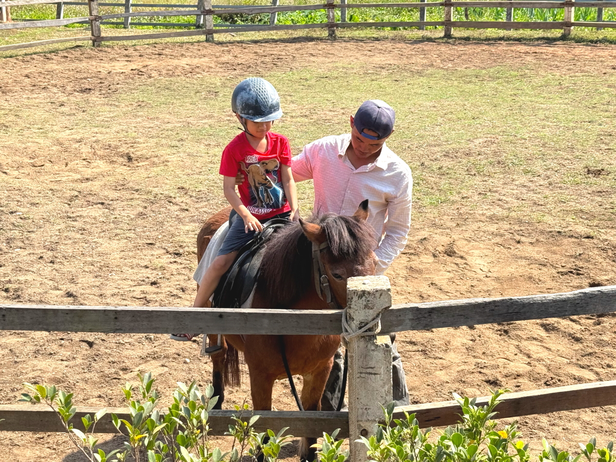 小さな男の子が乗馬していました