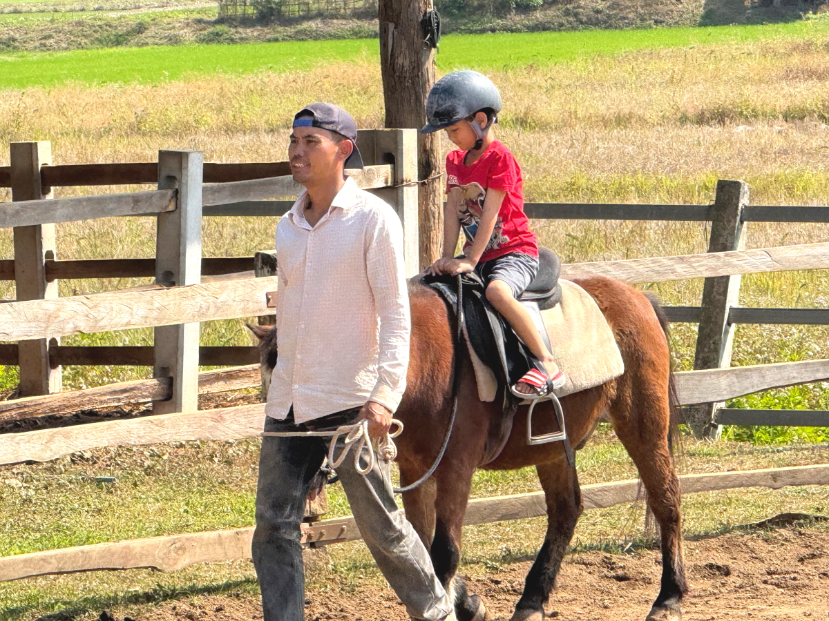 さっきの子供は緊張も解けて、乗馬を楽しんでます
