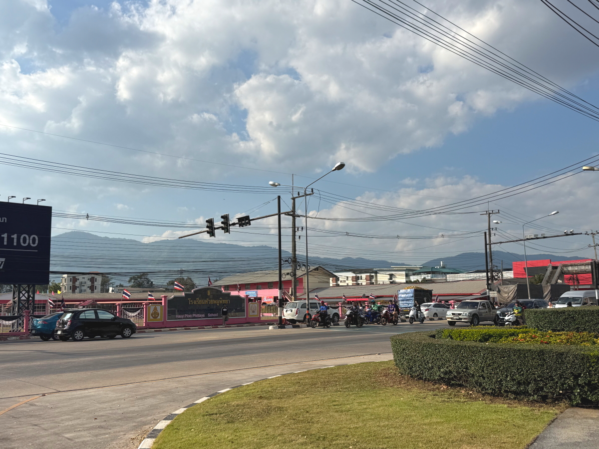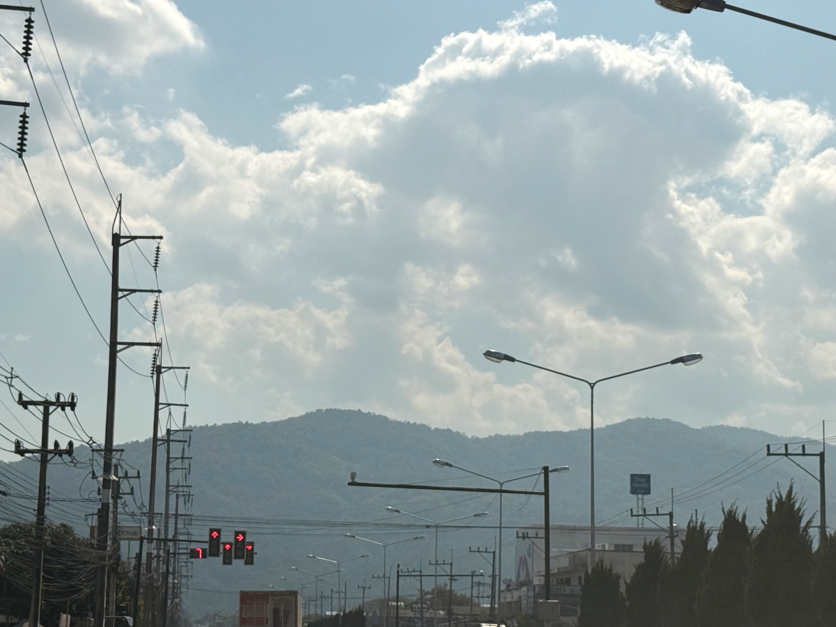 国道を南下したら、メーチャンの街の山に浮かぶ雲が壮観