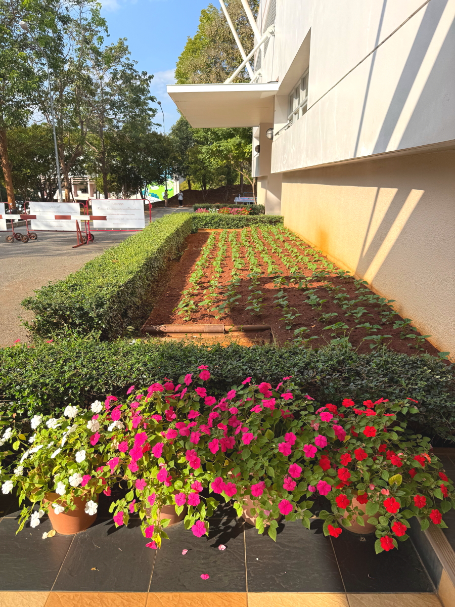 管理棟前の植え込みも、植え替えられてました