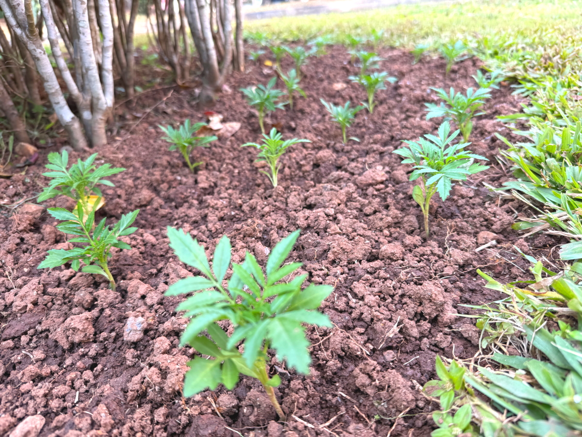 プール管理棟花壇のマリー・ゴールドは全て植え替え完了してました
