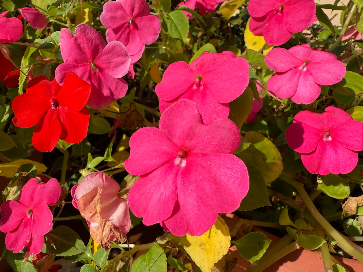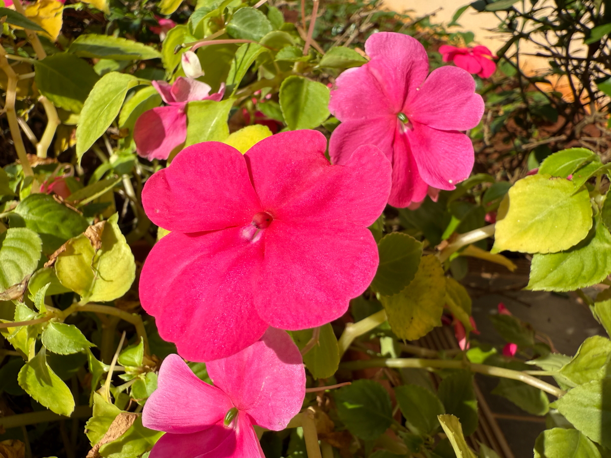 花壇横の鉢植えのお花達を撮影しました