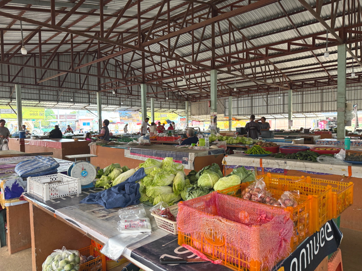 夕方の時間帯で、野菜も山積み