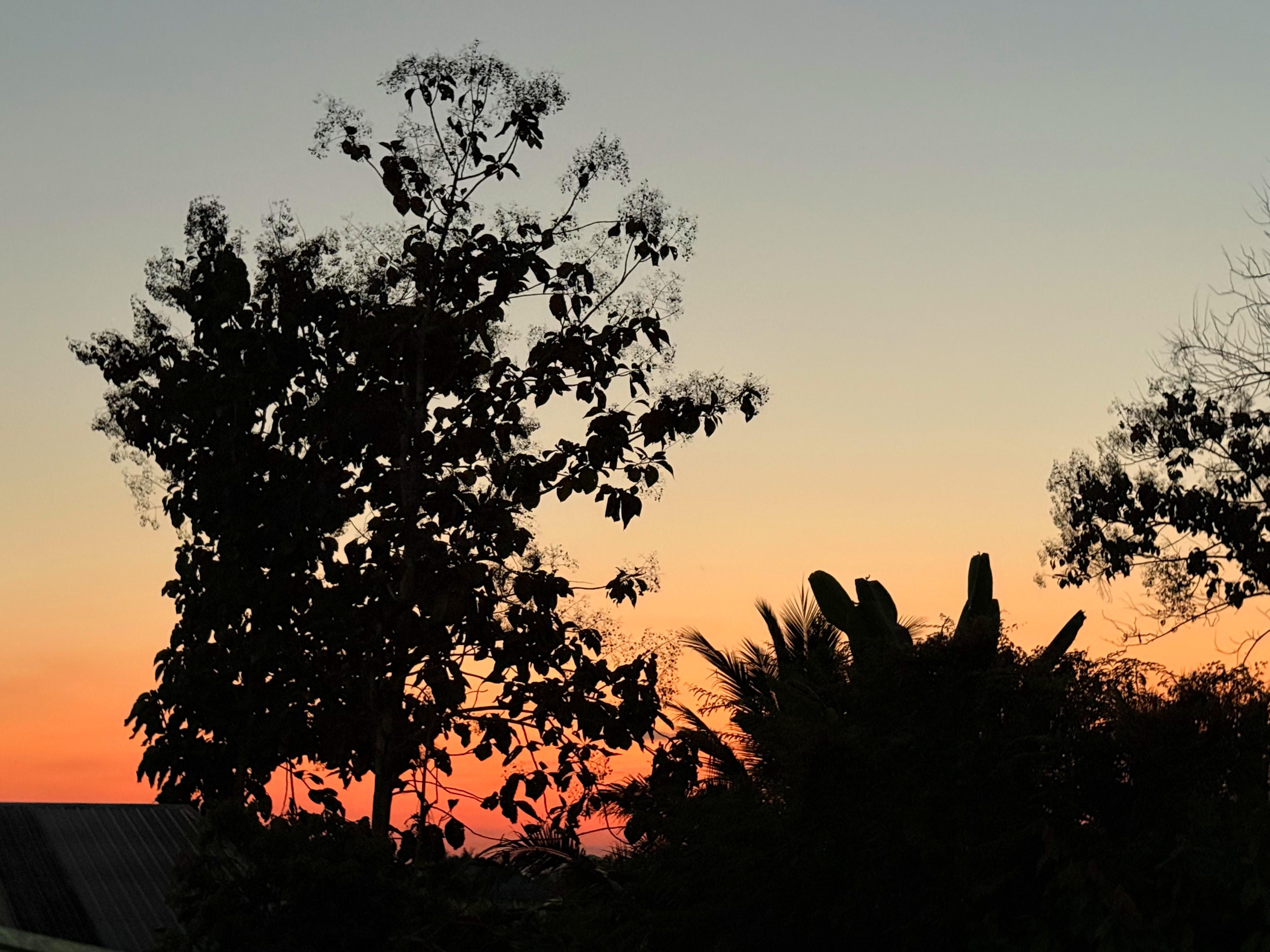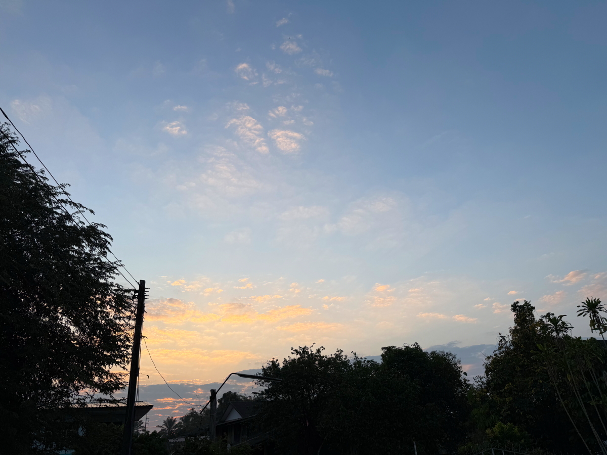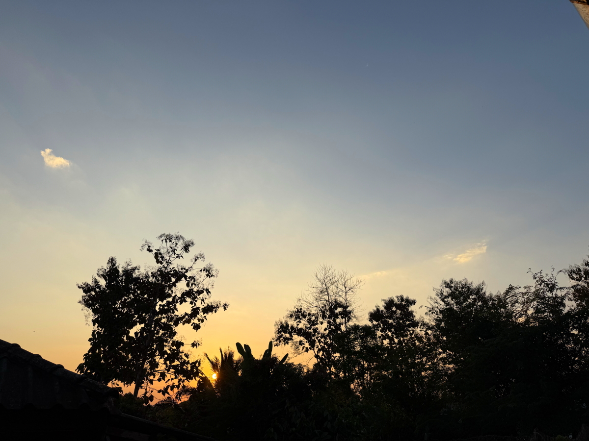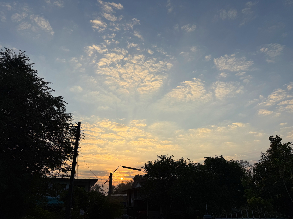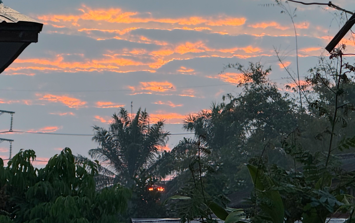 朝焼け空からメーチャンのスーパーと常設市場、親戚のお宅にお邪魔して夕暮れ定点観測まででした