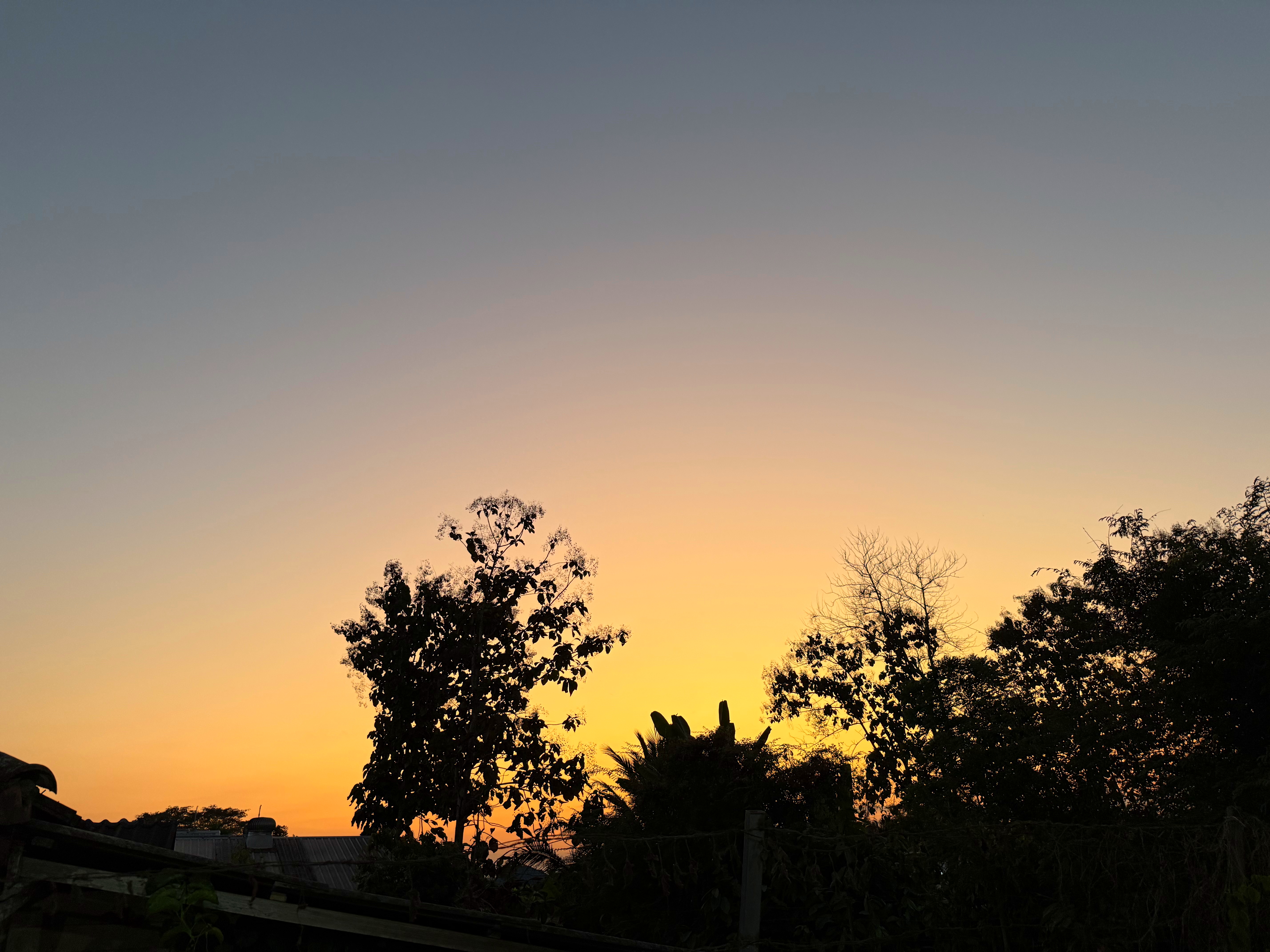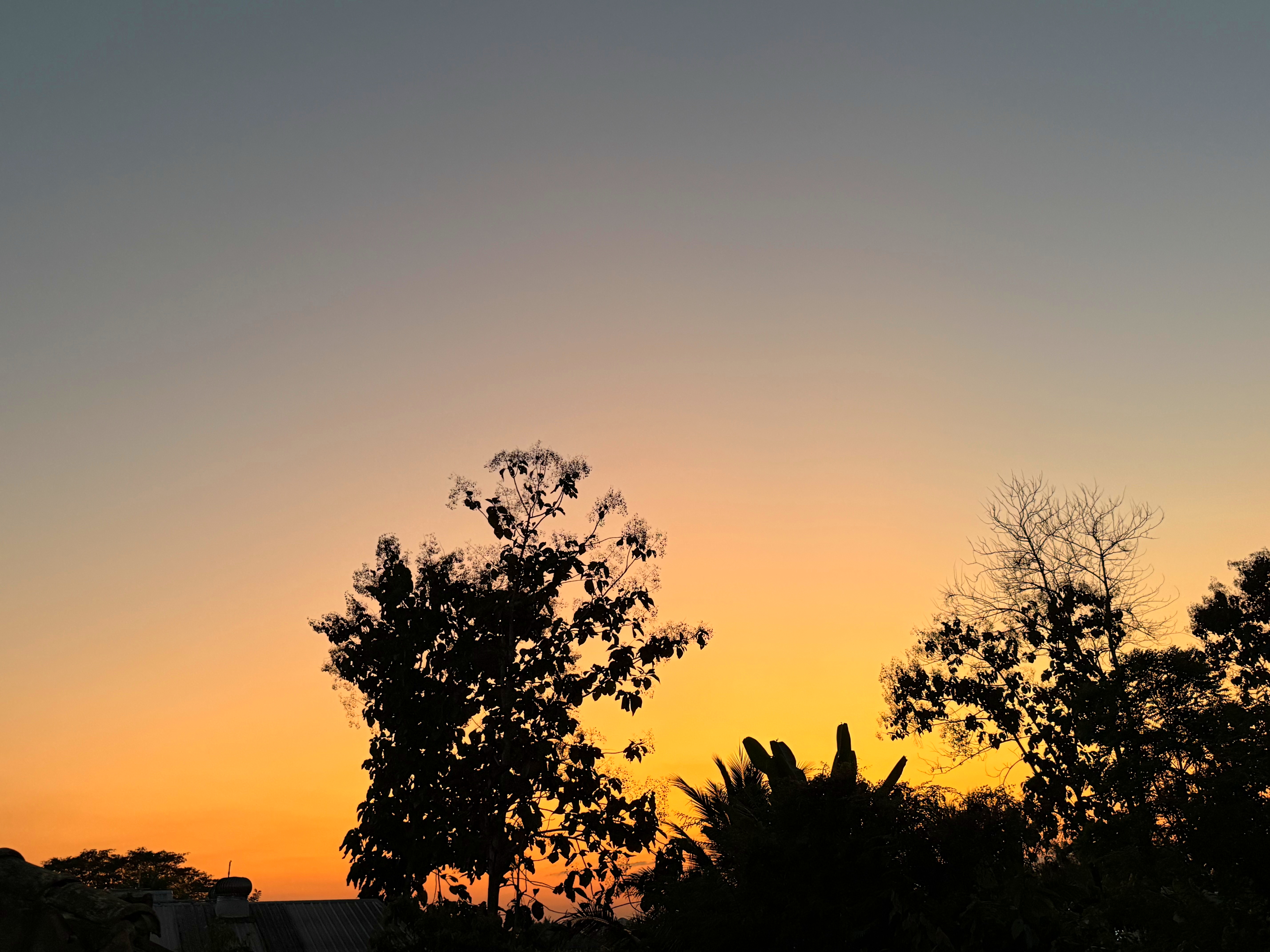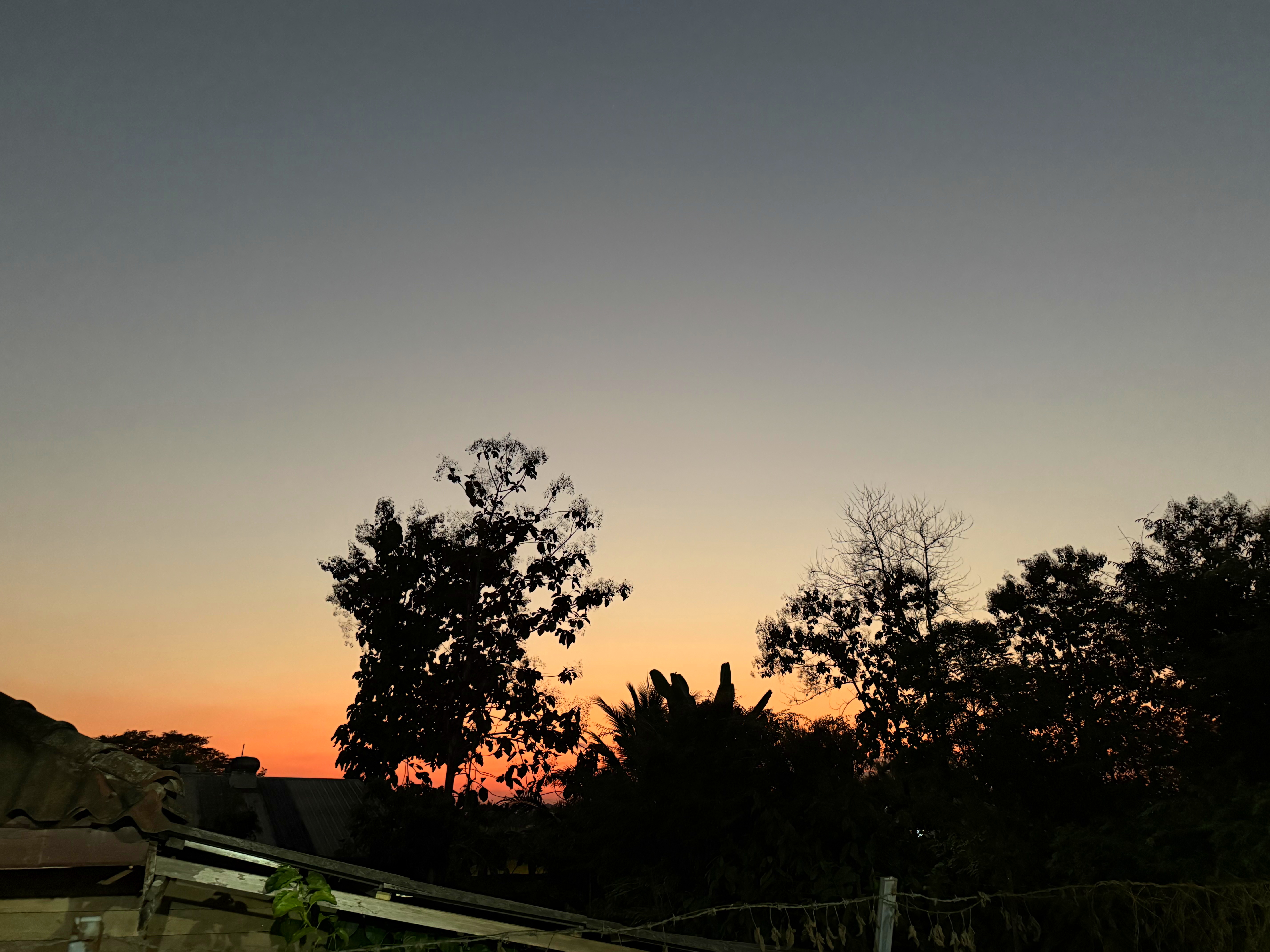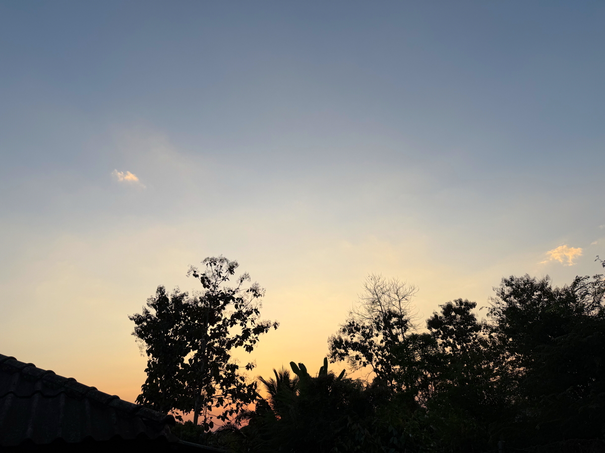 朝焼け空からメーチャンのスーパーと常設市場、親戚のお宅にお邪魔して夕暮れ定点観測まででした