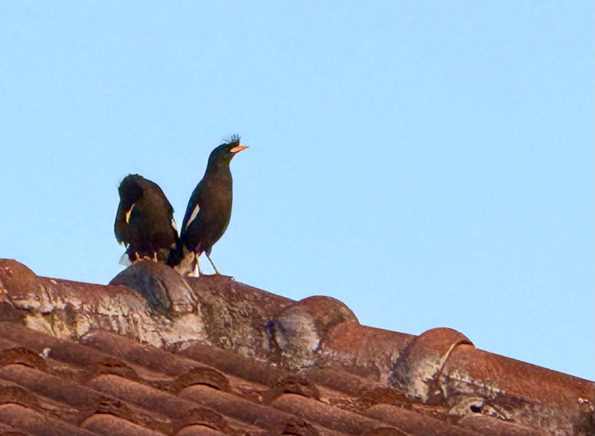 屋根上は鳩がいないうちに、こちらの鳥さんが朝陽を満喫