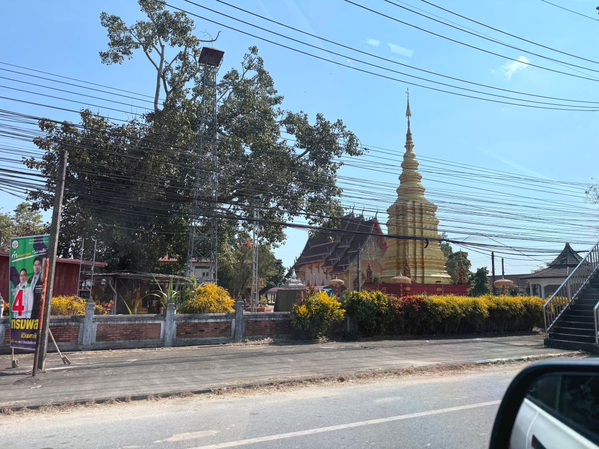 国道沿いのメーチャンの街のお寺、仏舎利等が見事な金色
