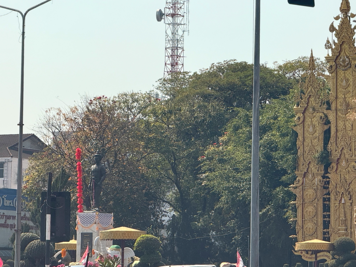 チェンライ市街の旧市街交差点には、戦争の英雄の黒い像がありました