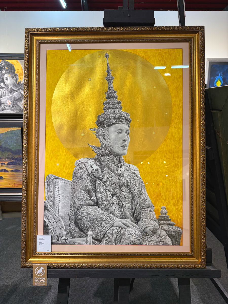 大きな街の中央分離帯には王室崇拝の王様の絵