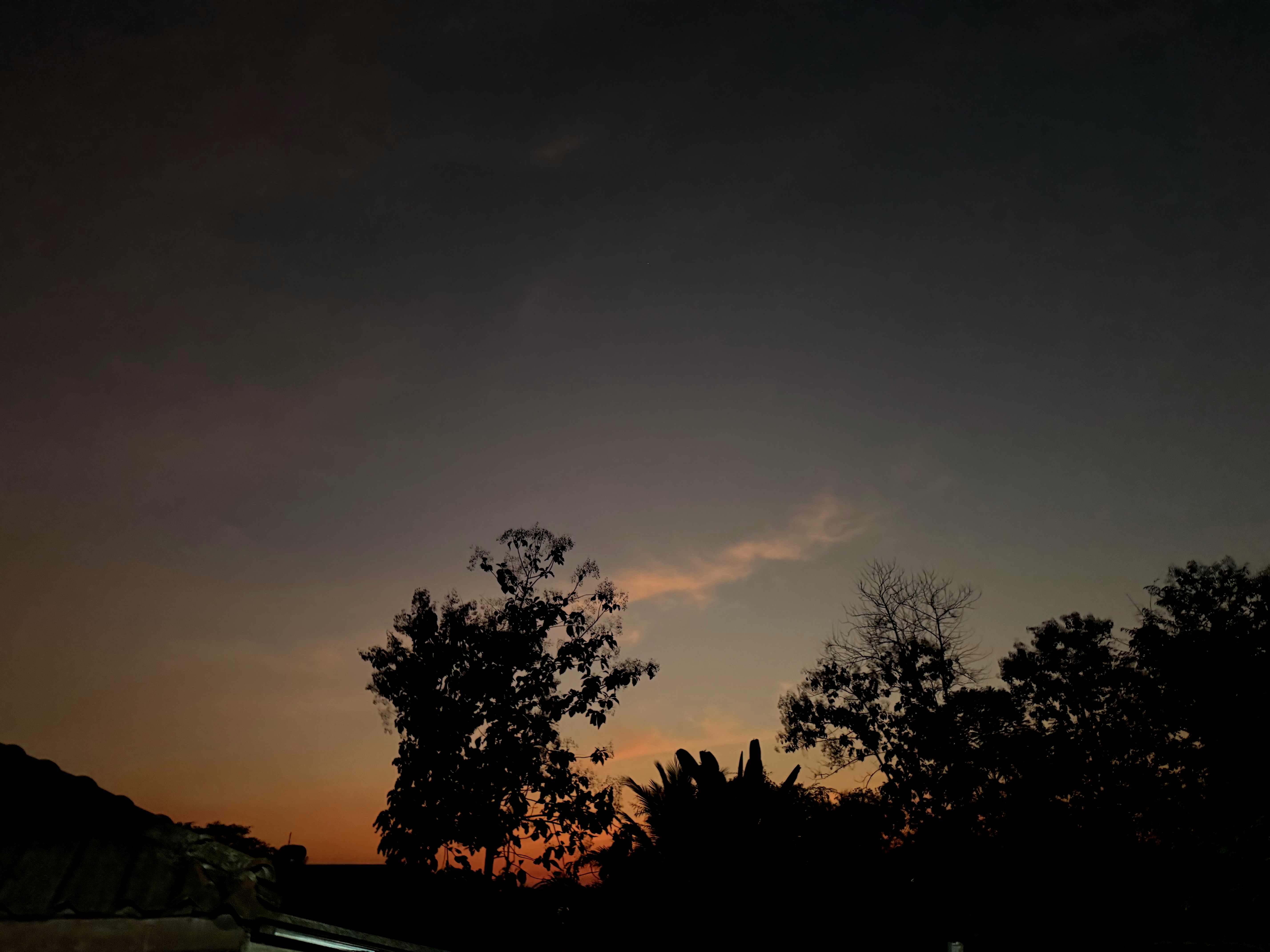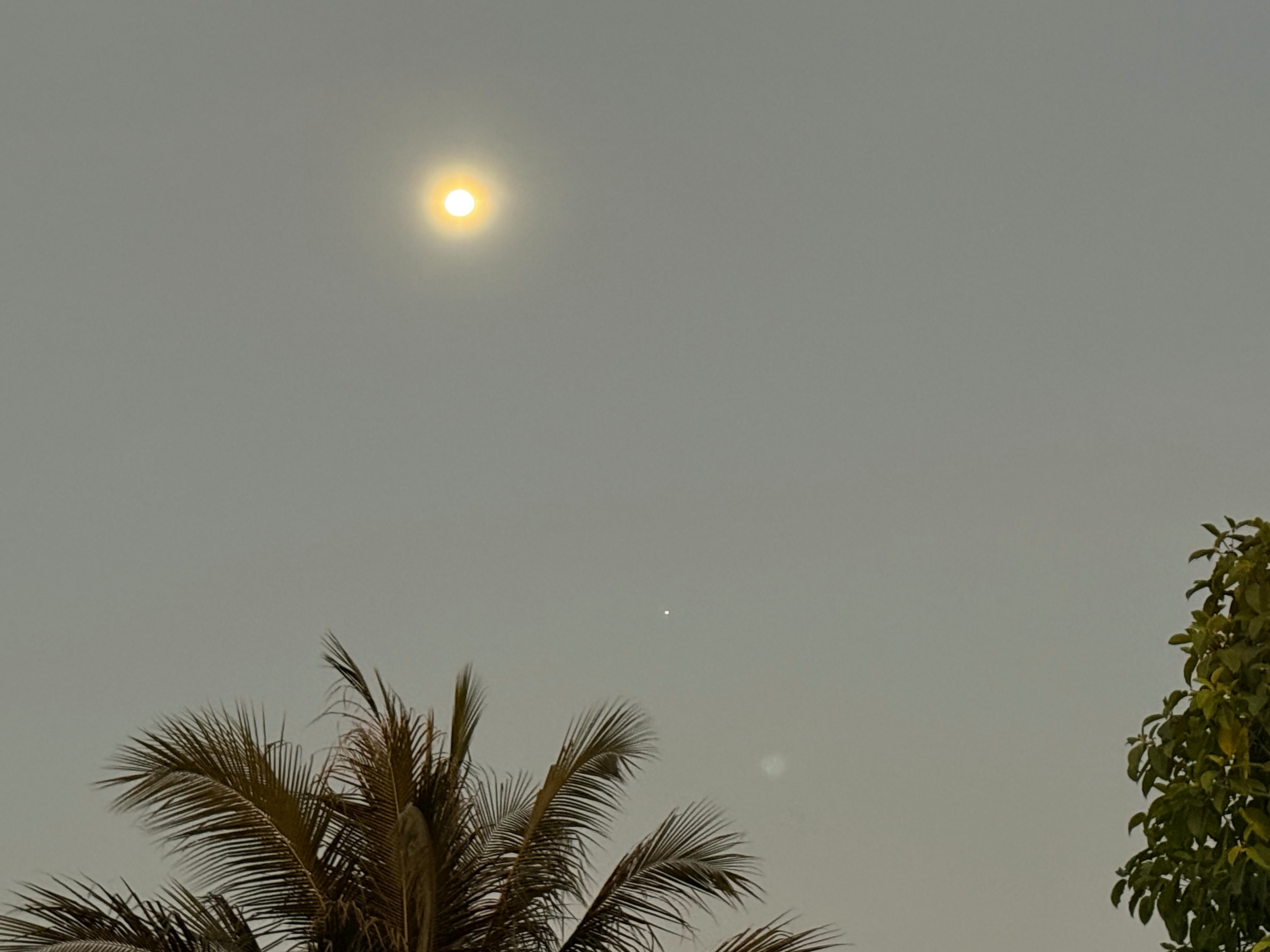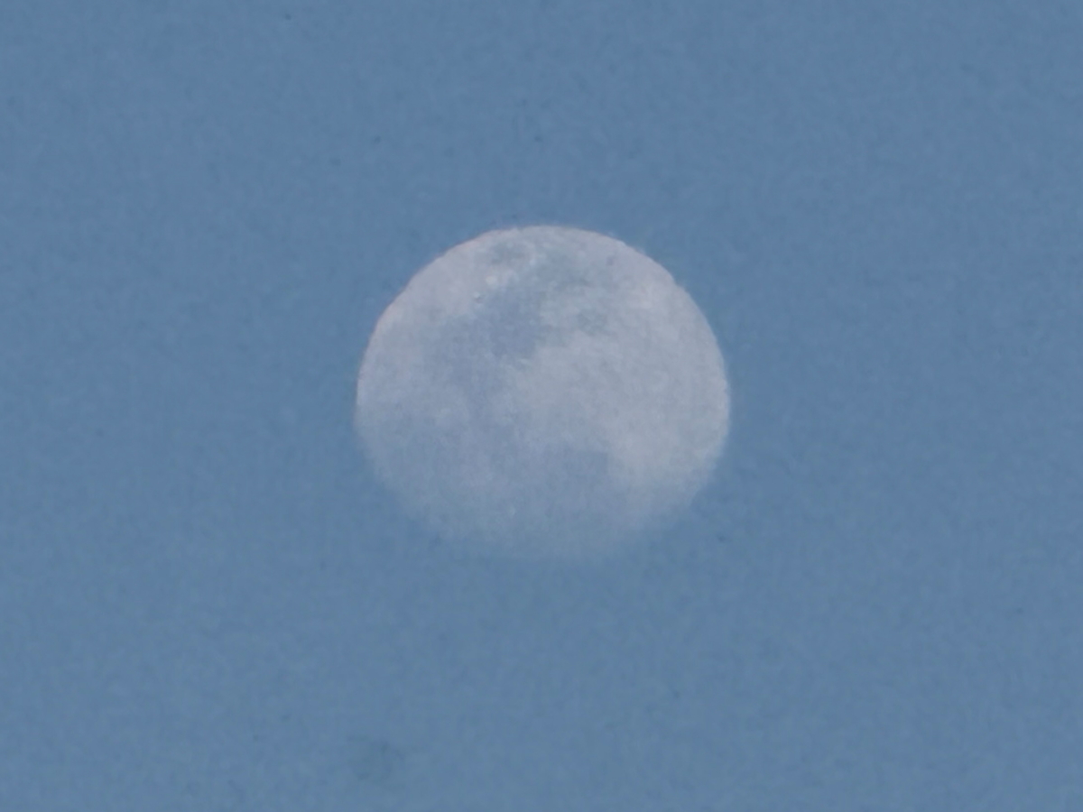 田んぼの休憩の木の上にお月様が浮かびました(ピンボケ)