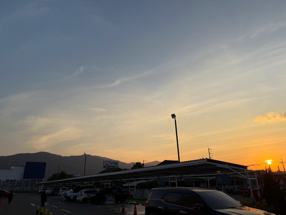 朝焼けと屋根上の鳥、チェンライのショッピング・モールから、夕暮れ定点観測まででした
