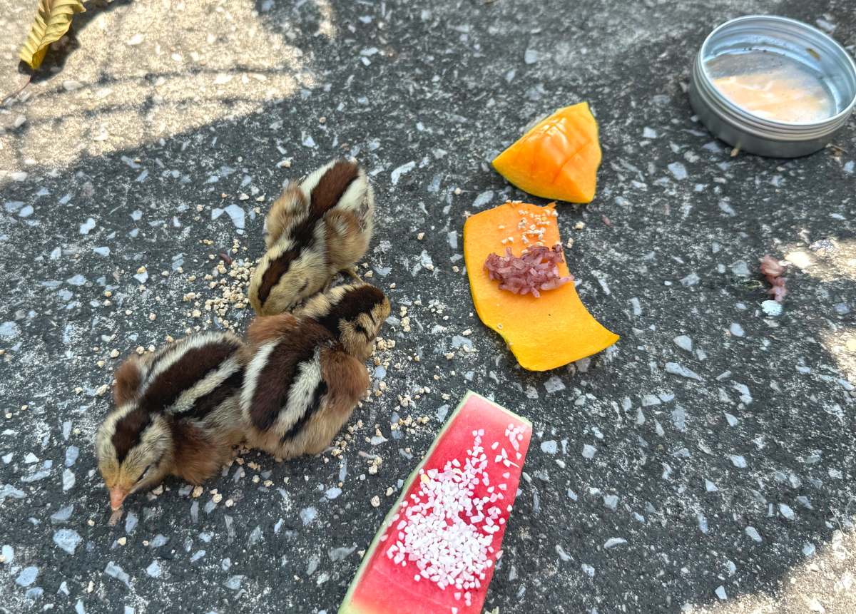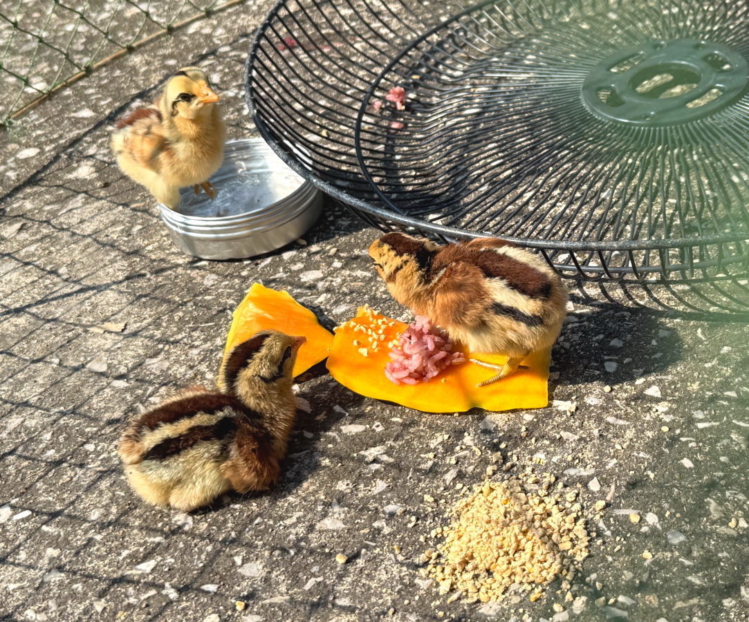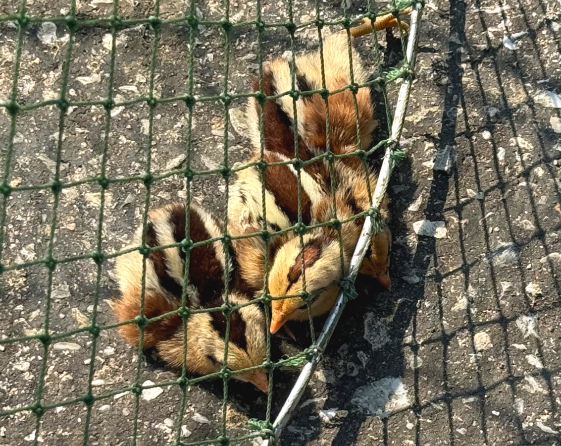 さらに2羽を保護、色違いの黒は幼すぎて地面でおねんね