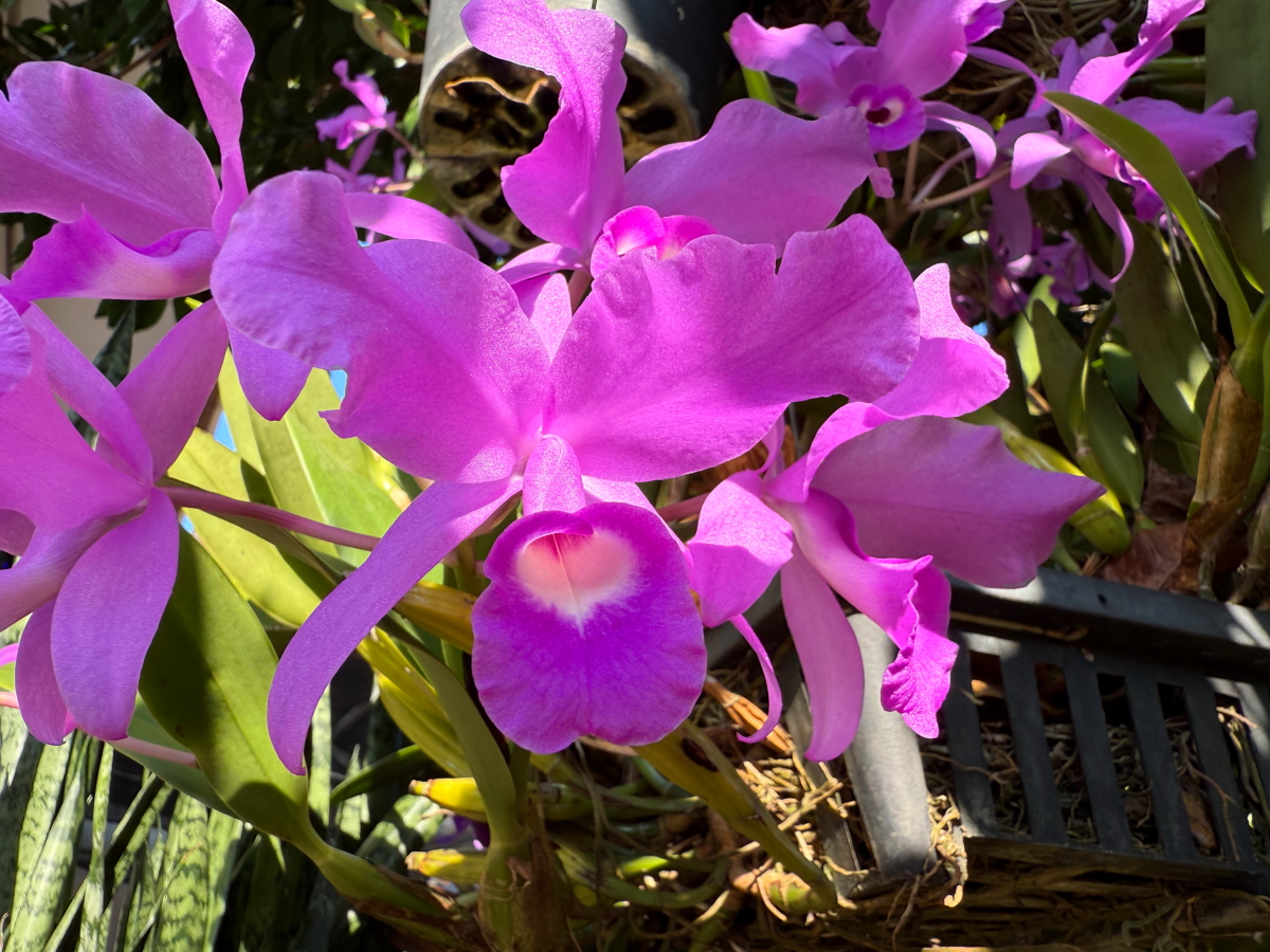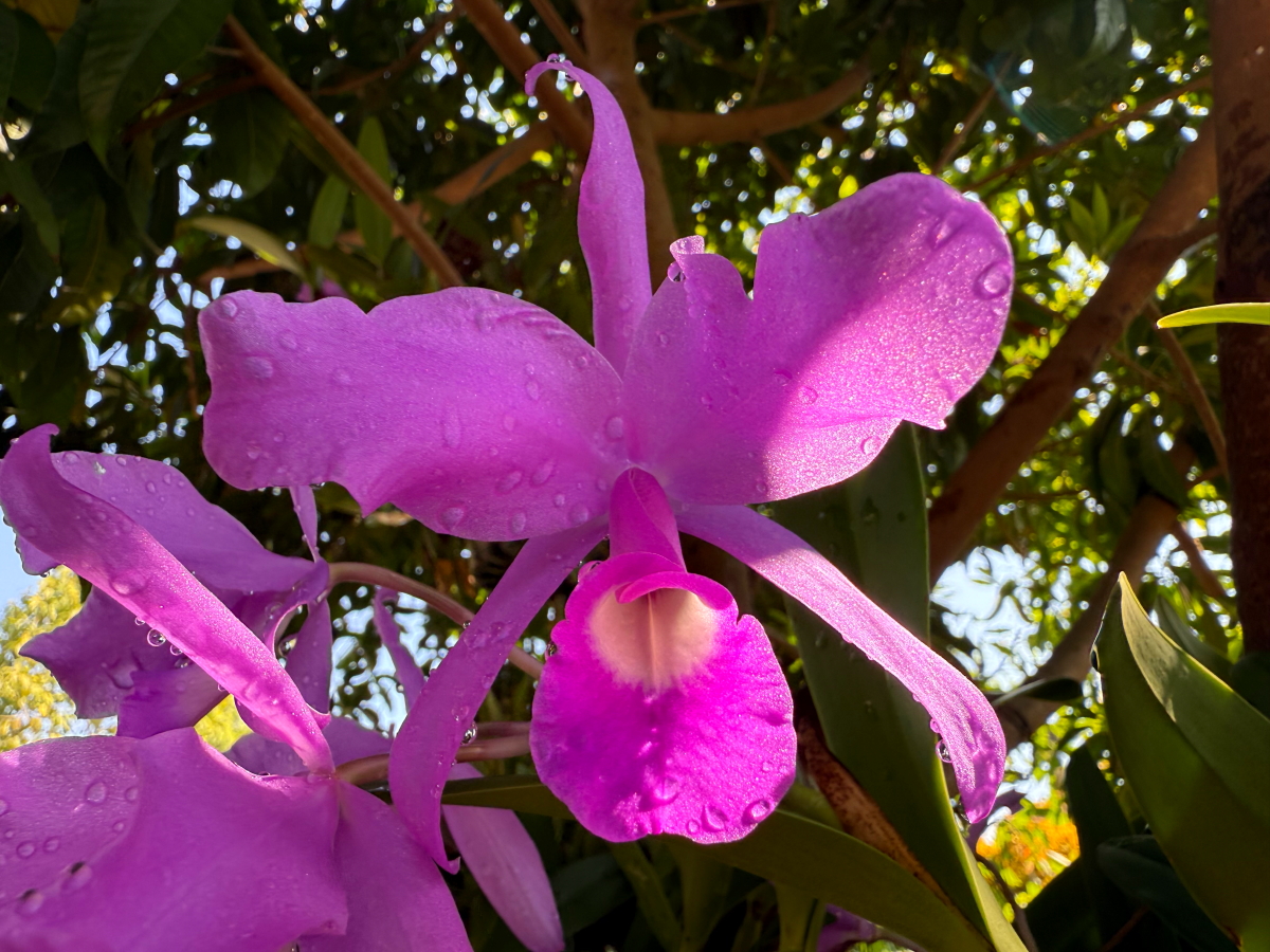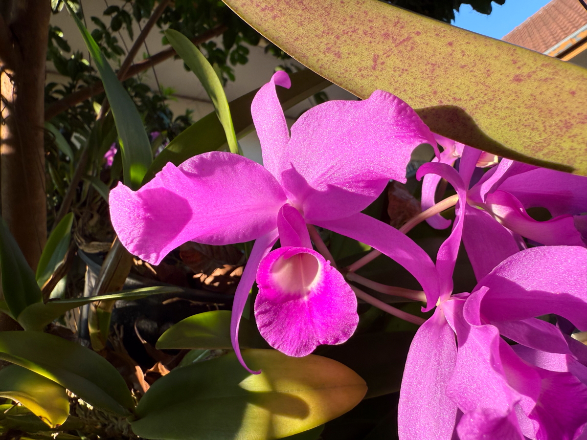 西陽に照らされた蘭のお花が色づいてニッコリ
