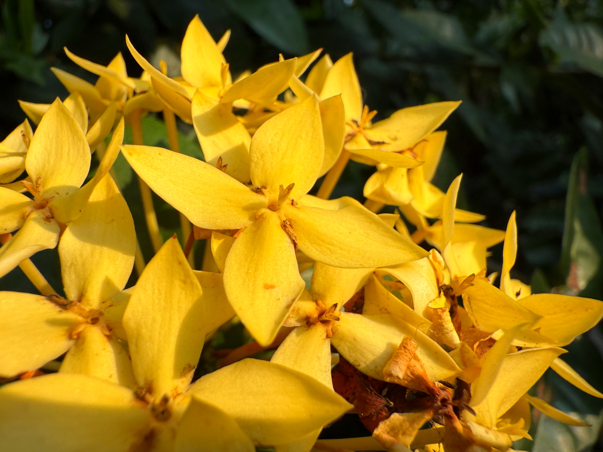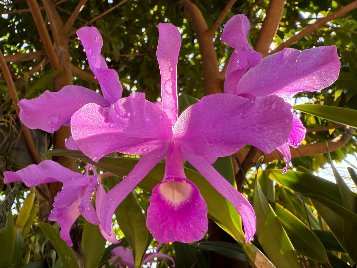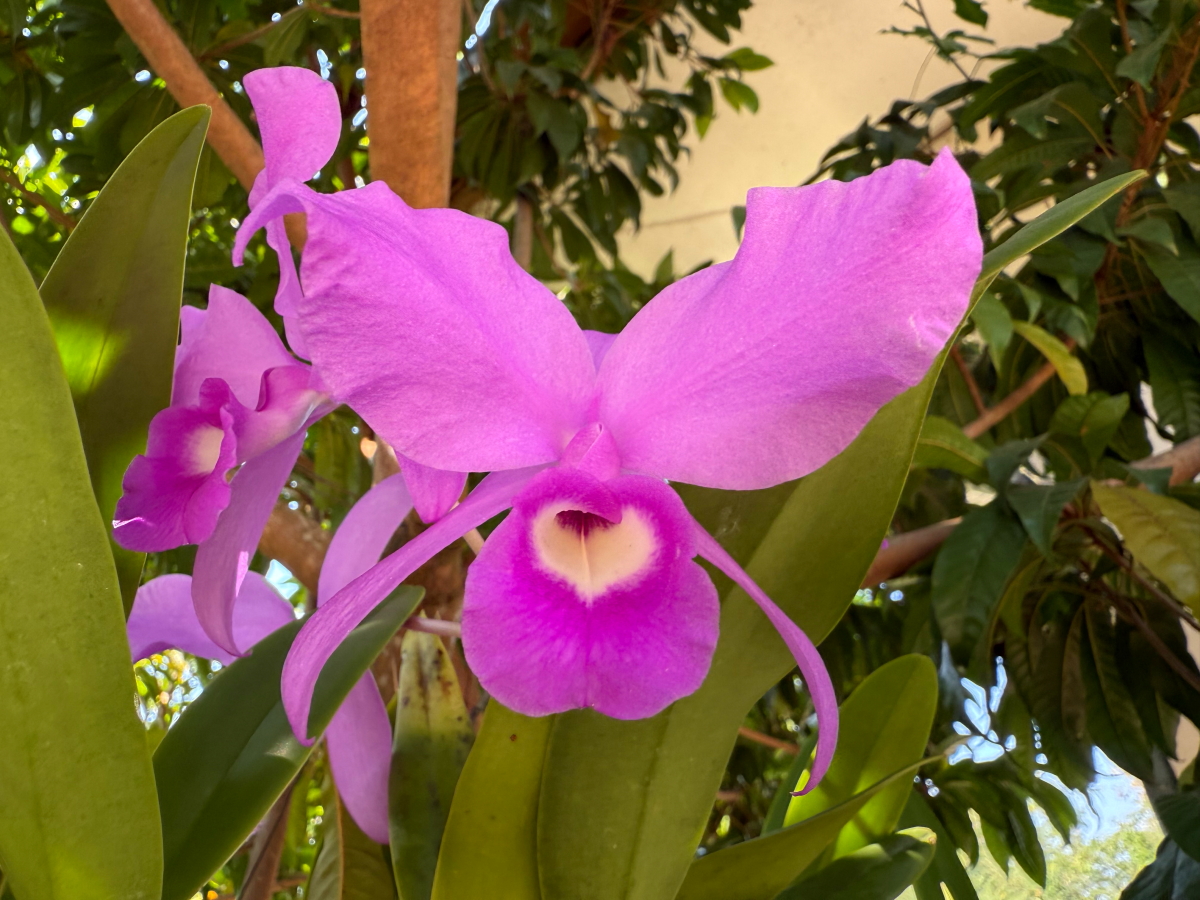 西陽に照らされた蘭のお花が色づいてニッコリ
