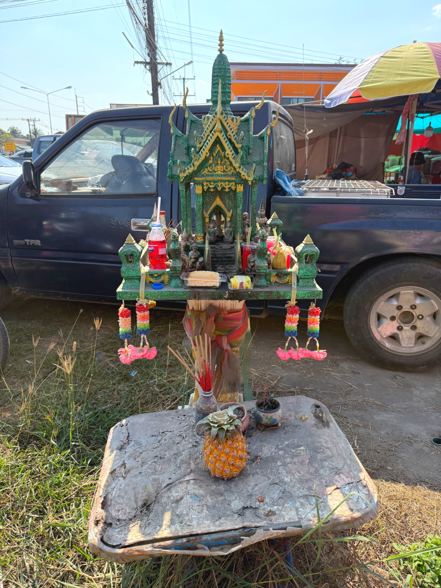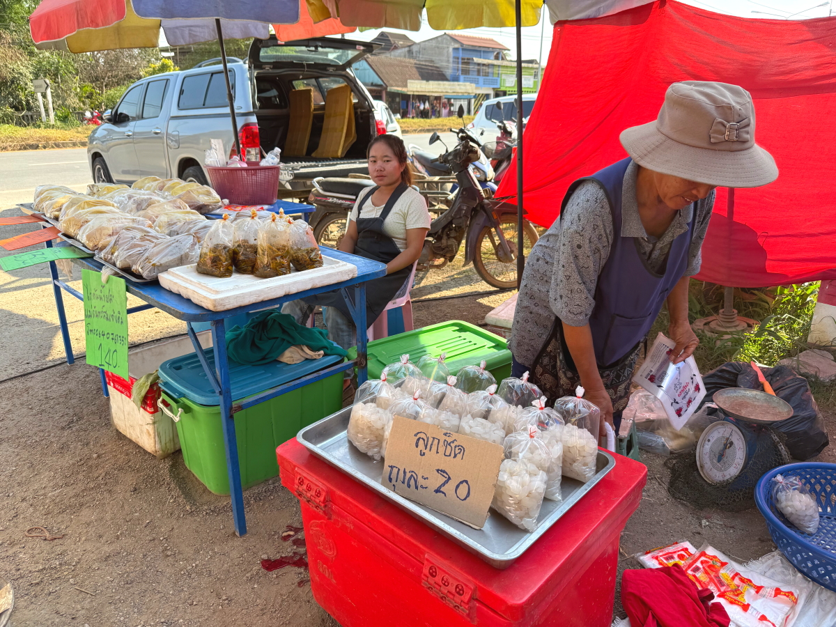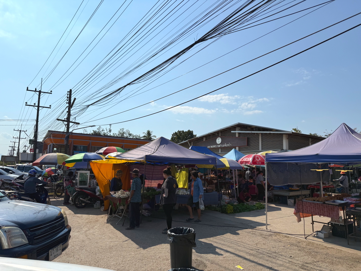 市場の屋台の虫除けシステム、扇風機のモーター部分を再利用しています