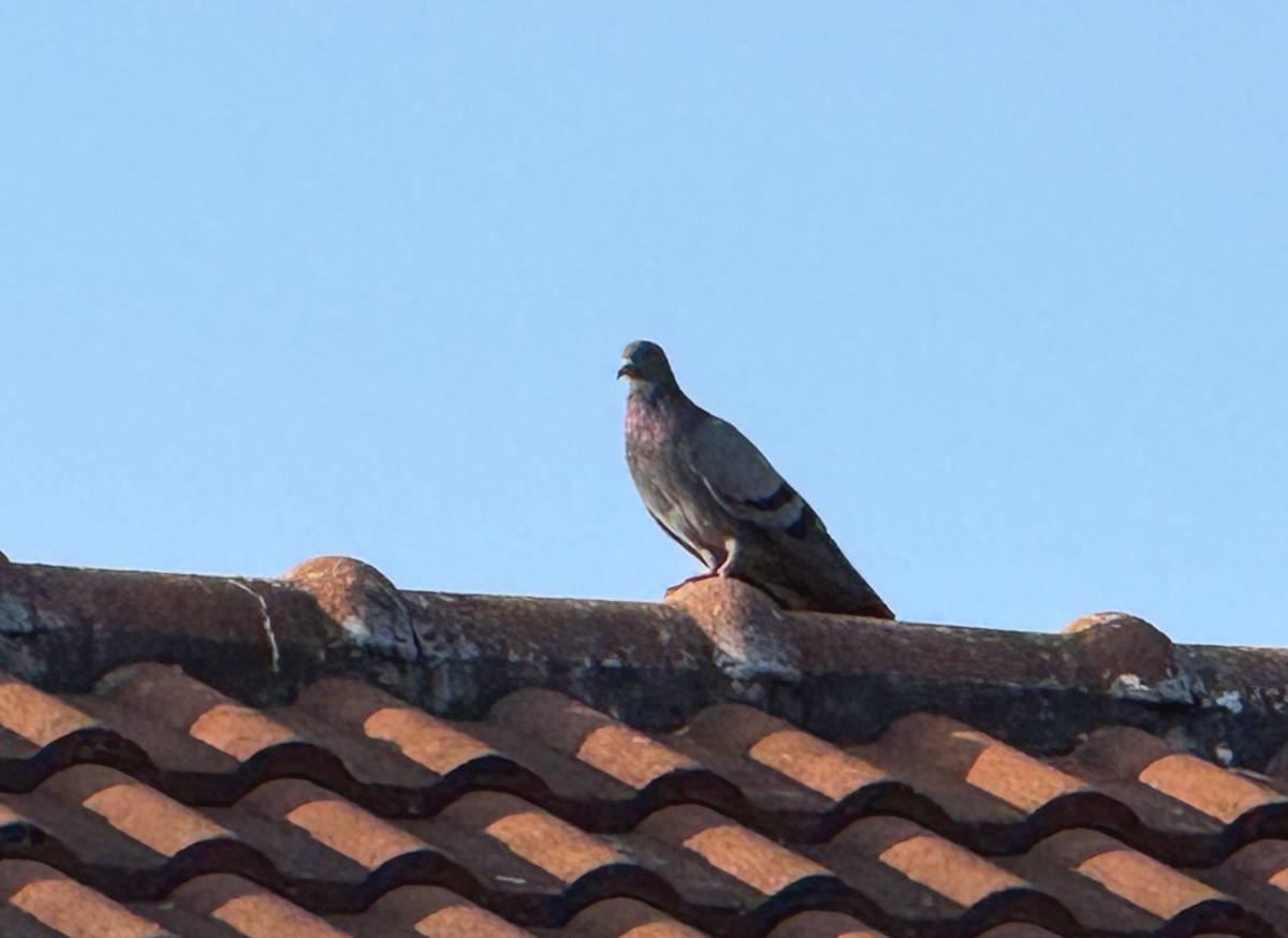 屋根上からはいつもの鳩さん