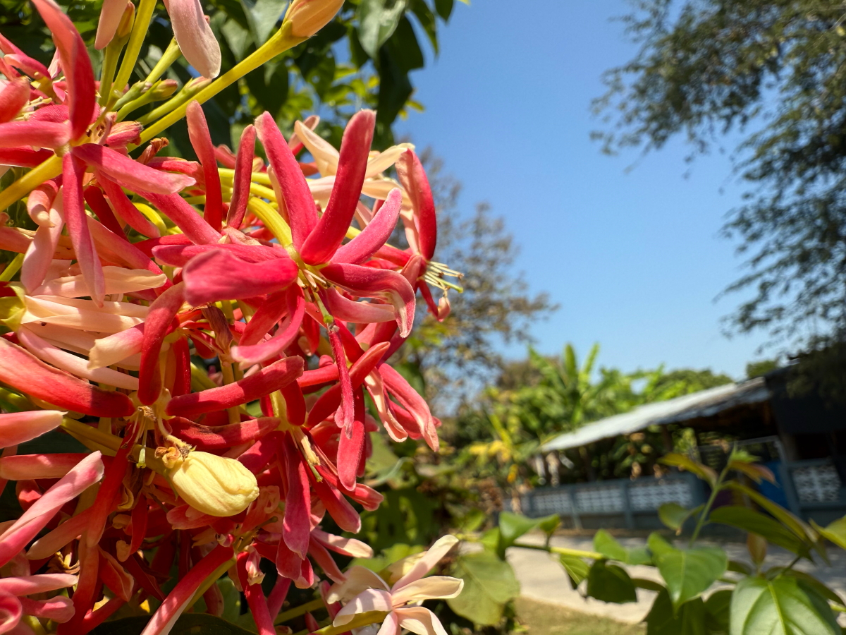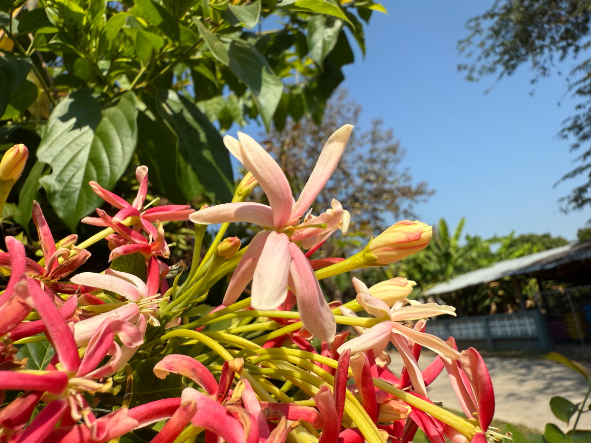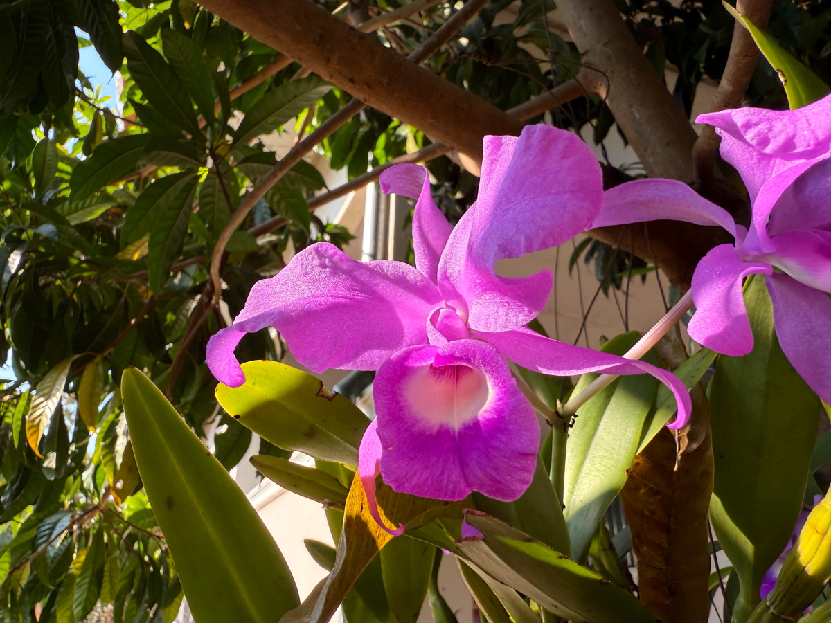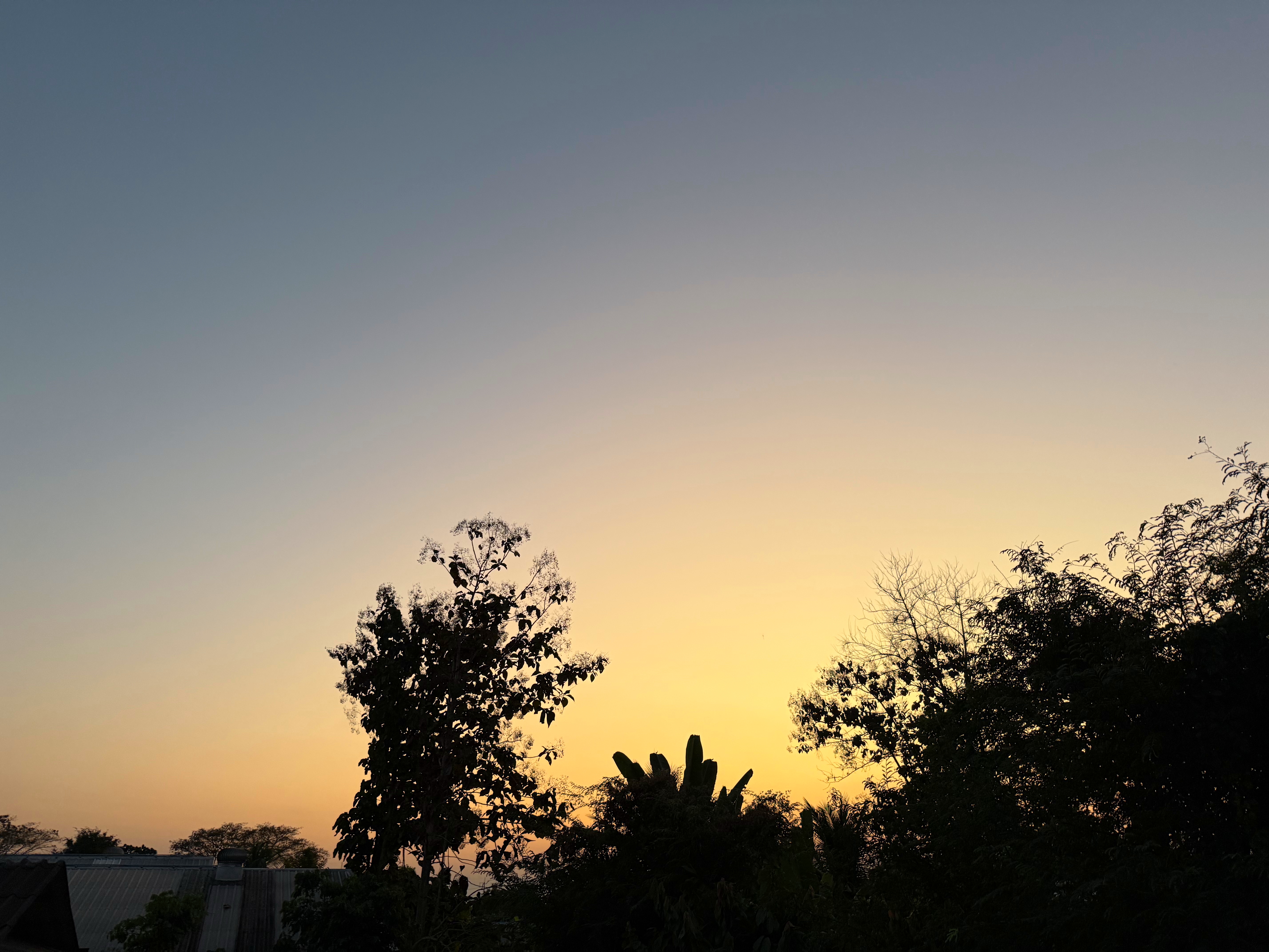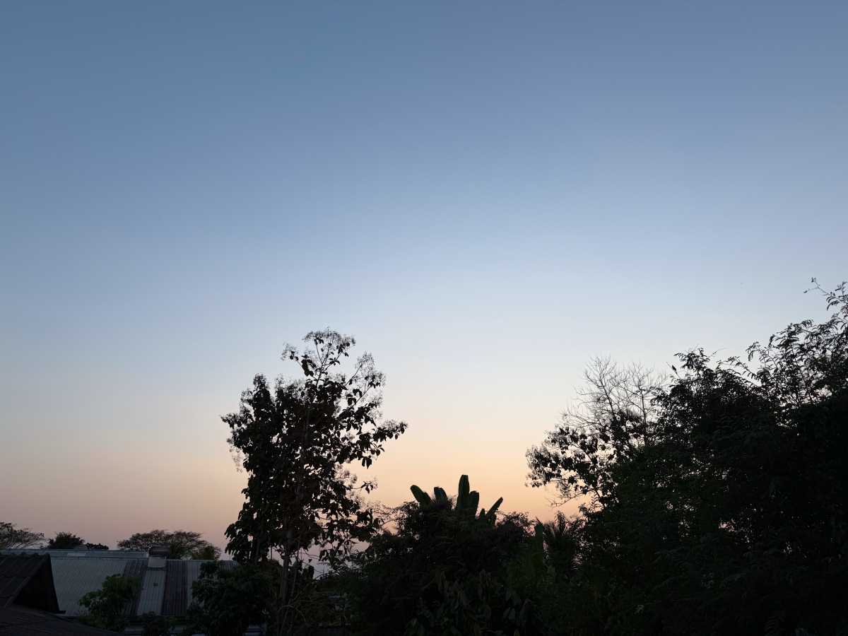 青天の朝陽に鳥とお花、いつものプールから市場と温泉、定点観測の夕暮れから星空まででした