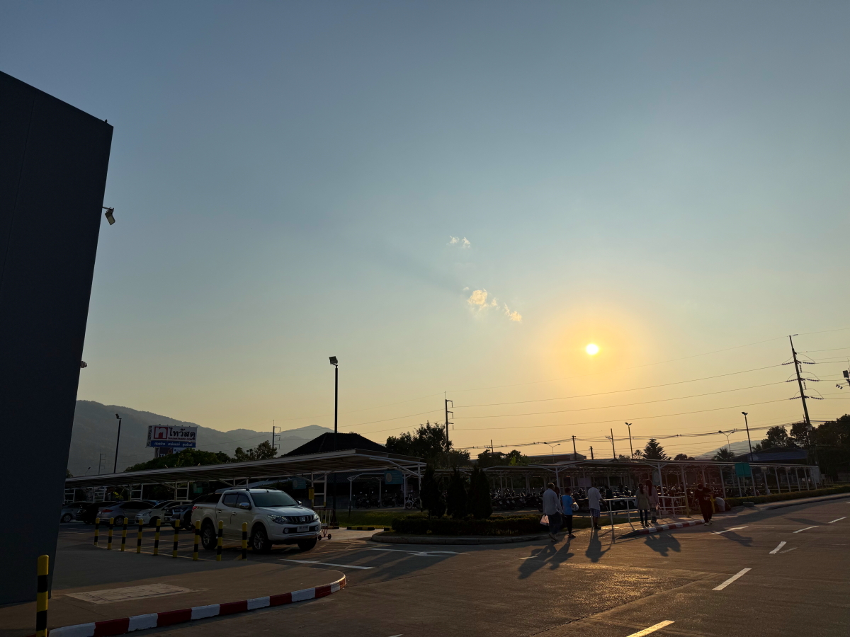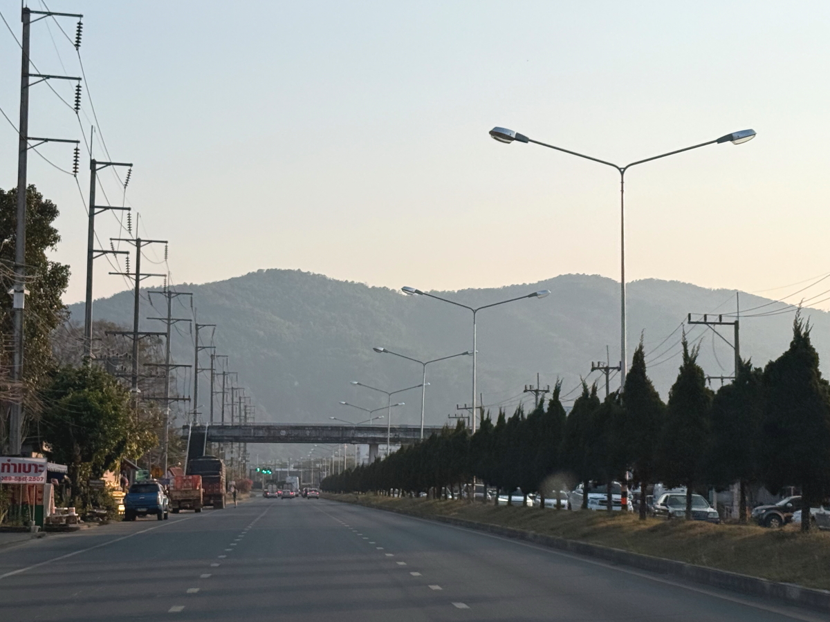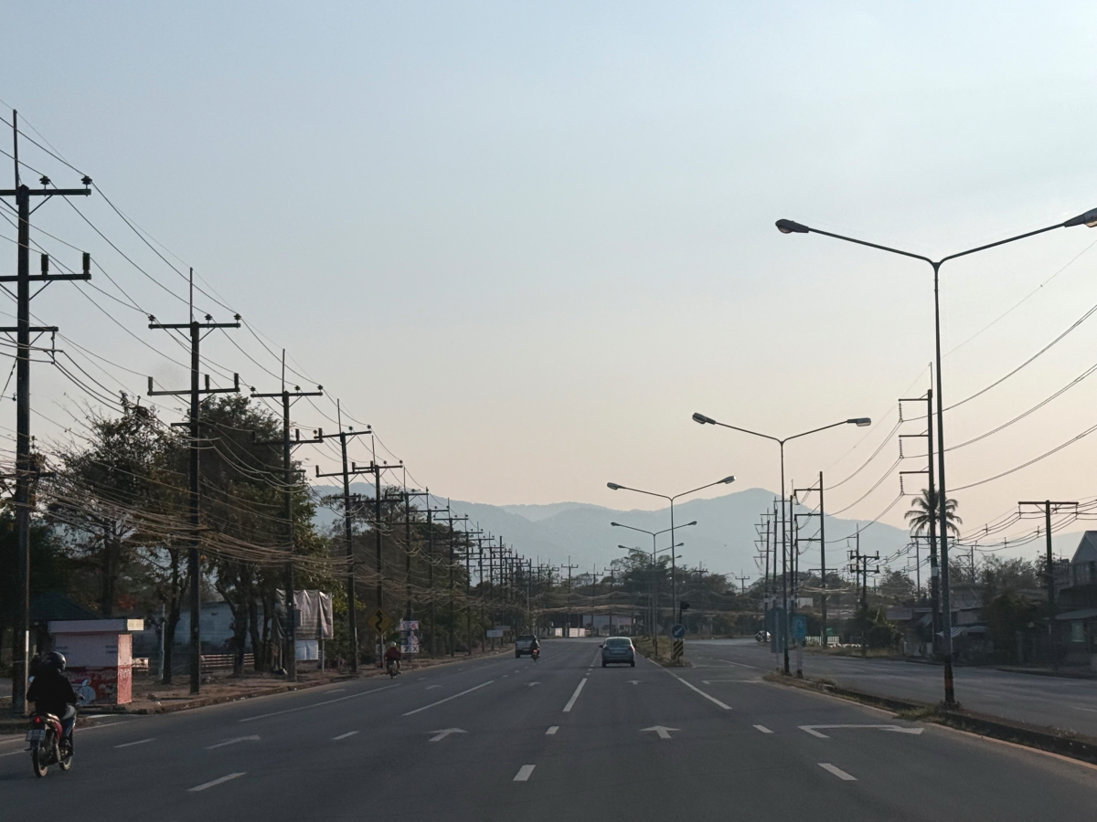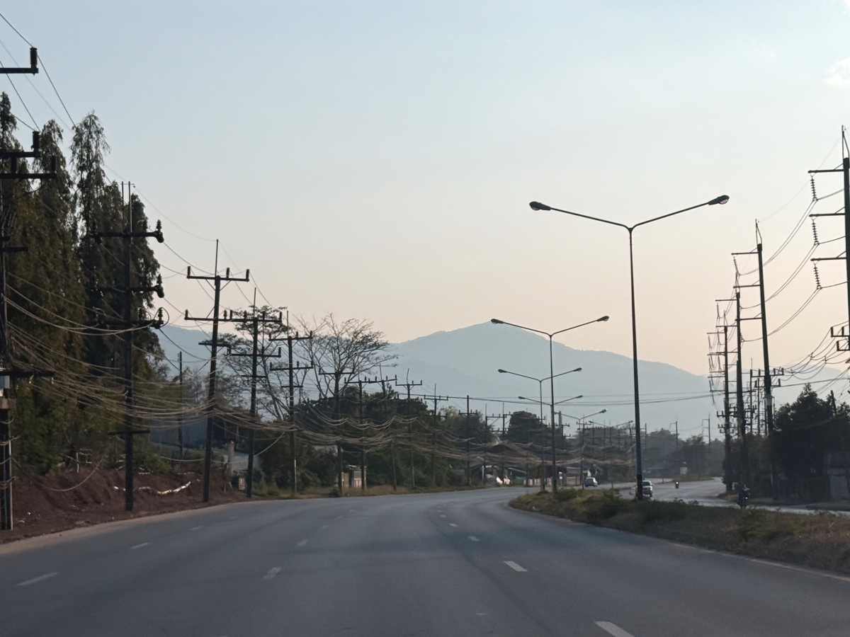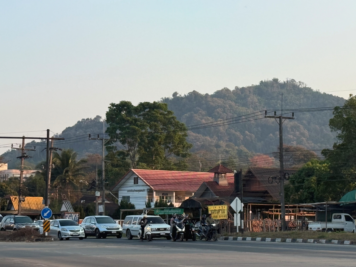 メーチャンの街に入ると、近郊の山の山肌がなんとか見えるレベル