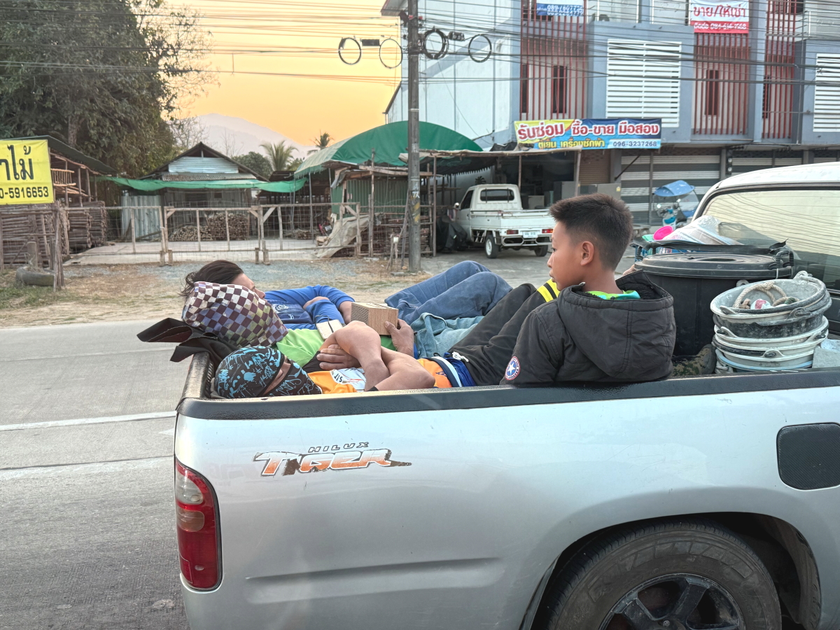 帰りの国道でちょうど隣に止まった荷台の光景、これも日本では見られません!