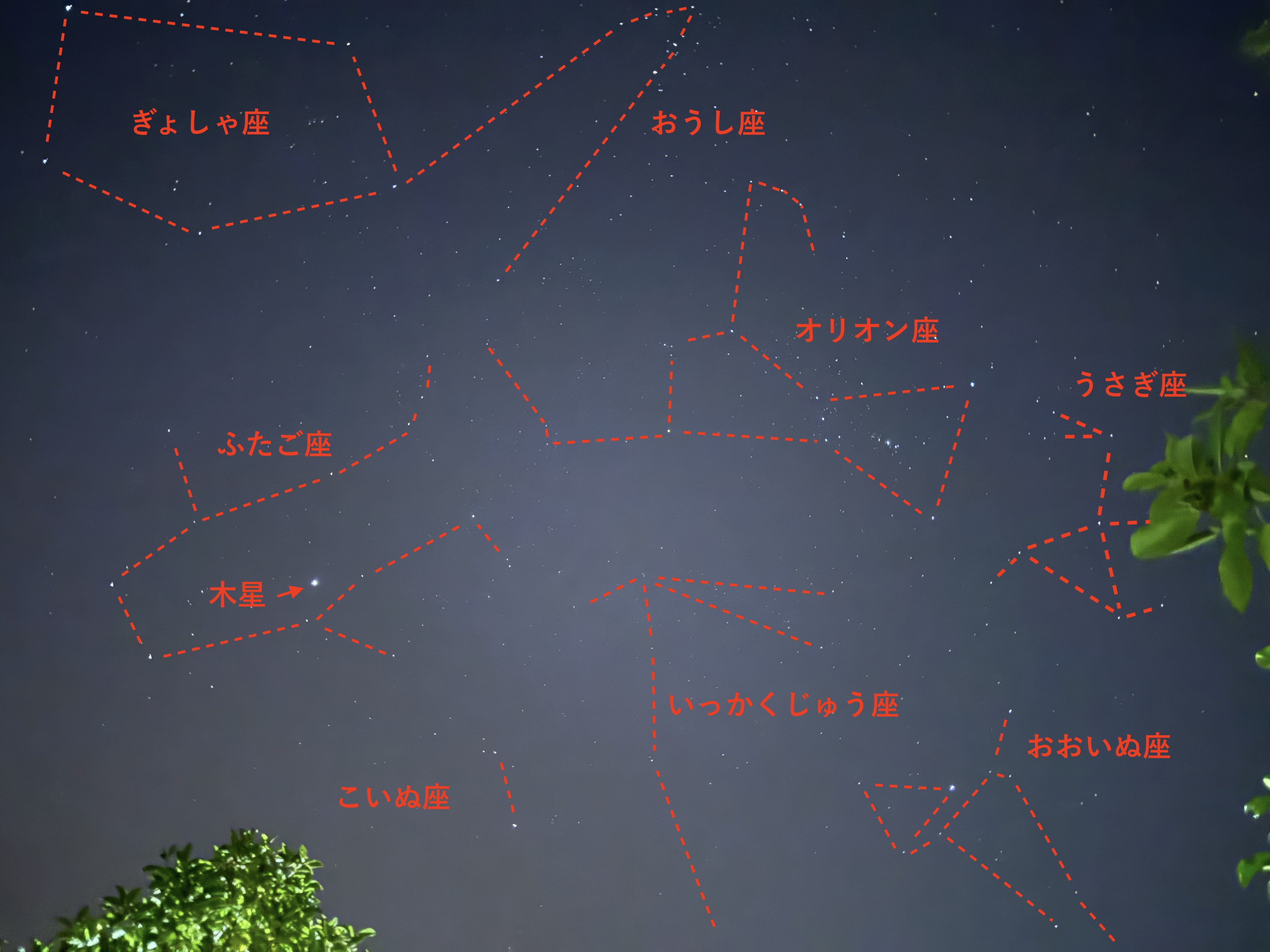 冬の大三角形中にあって目立ちにくい、いっかくじゅう座もトレースしました