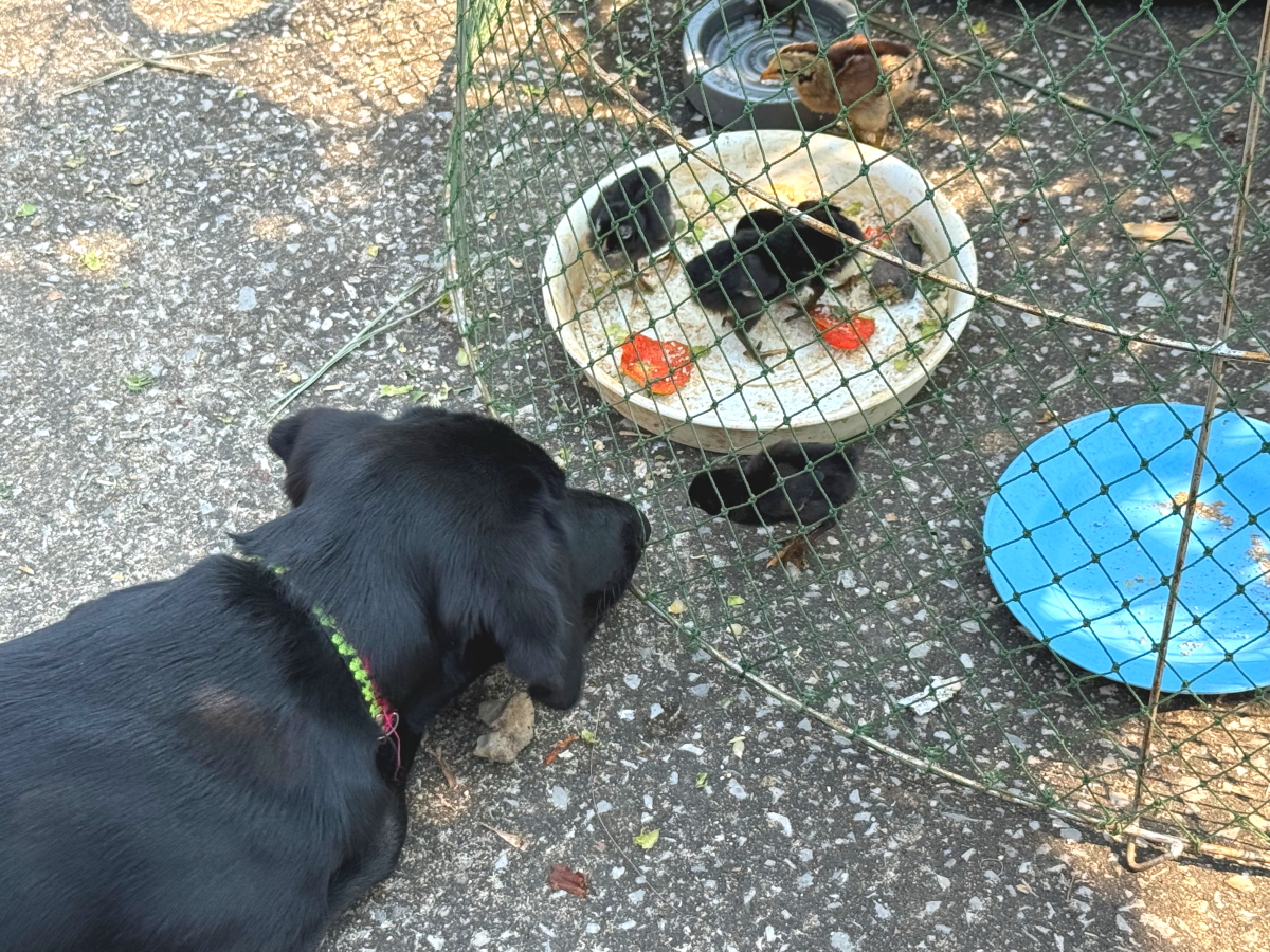 ワンコは相変わらずヒナの様子見、ヒナの方もワンコに興味ありそう