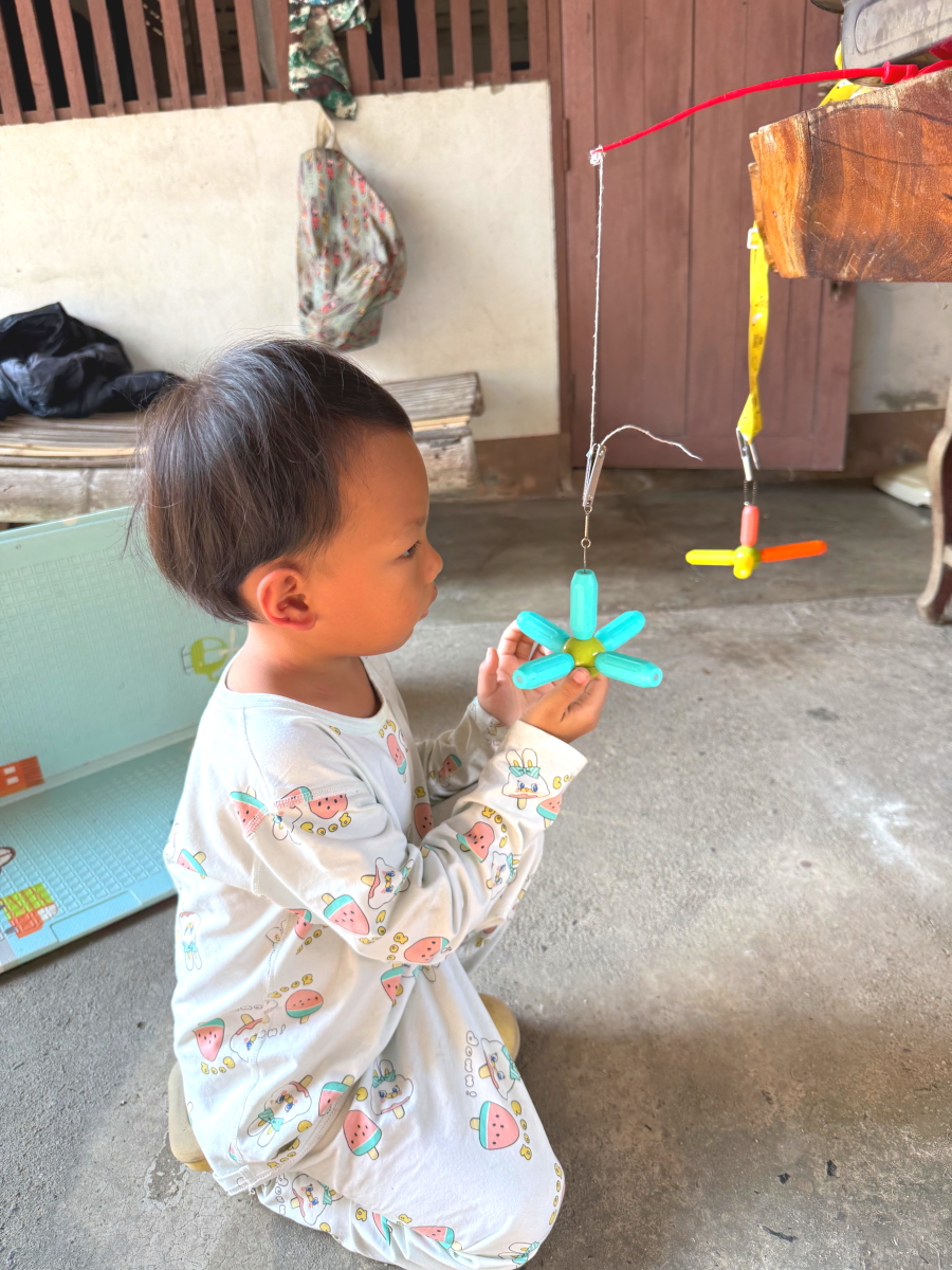 チビちゃんは磁石のおもちゃに夢中