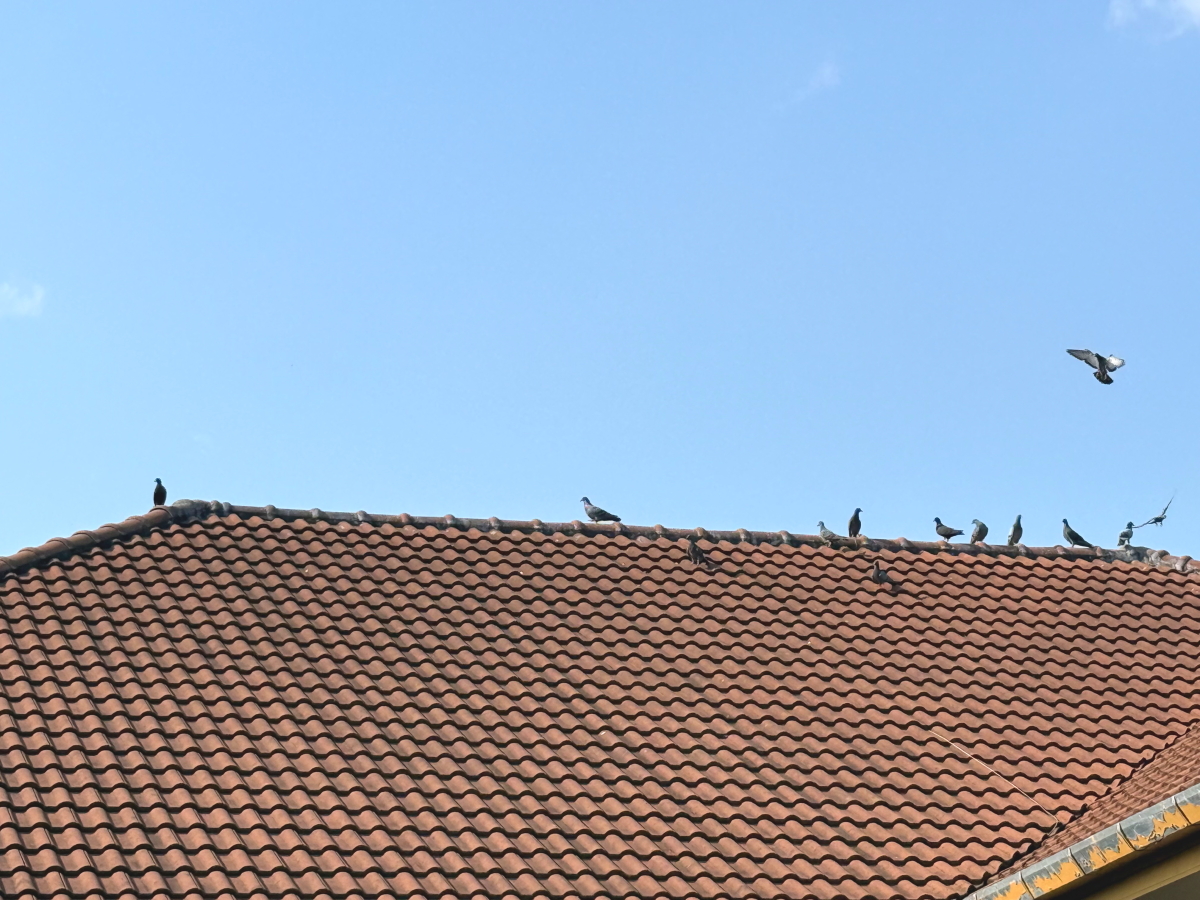屋根上は完全に鳩達の世界