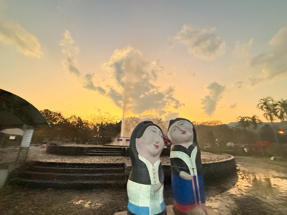 遅い時間に来たので、オレンジ・グラデーションは温泉の噴水バックになりました