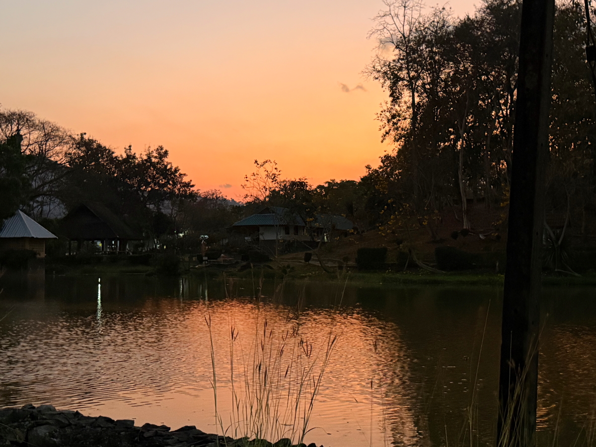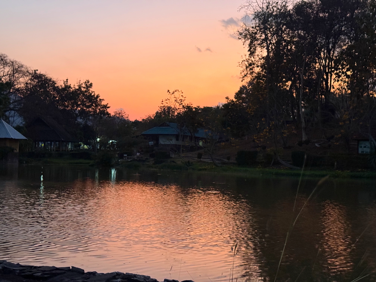 池の空の夕焼けが見事な色に!