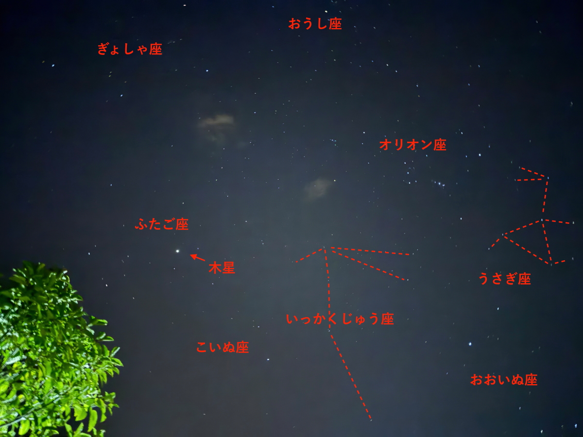 最後は星空、いっかくじゅう座とうさぎ座だけトレースしました