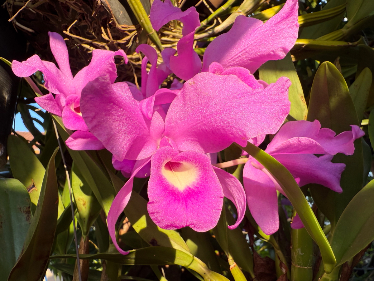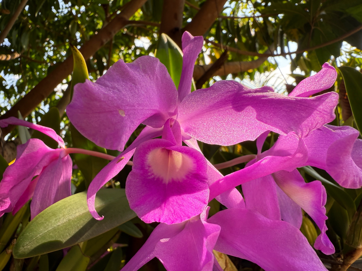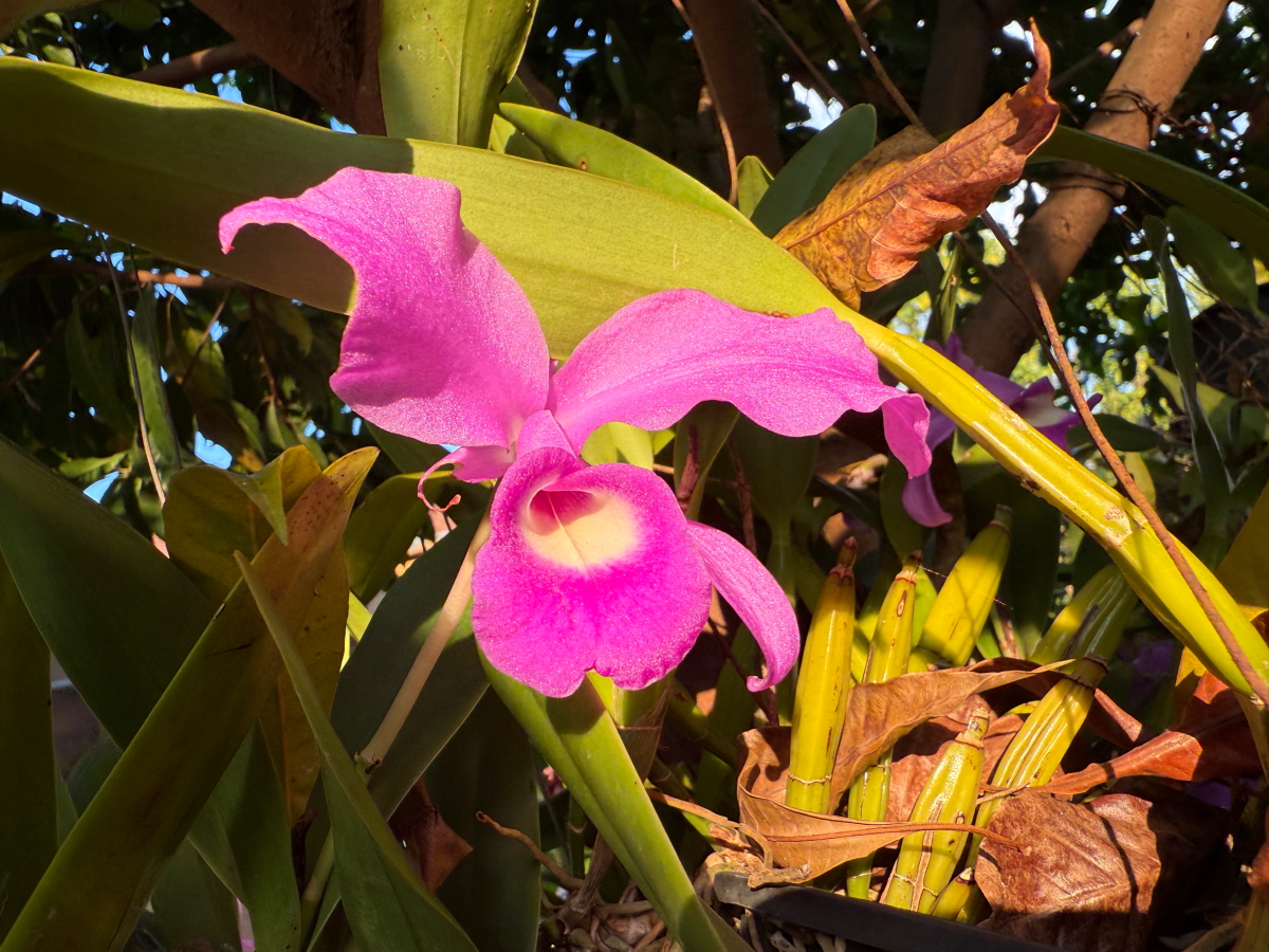 もう夕方で、夕陽を浴びた蘭のお花が鮮やか!